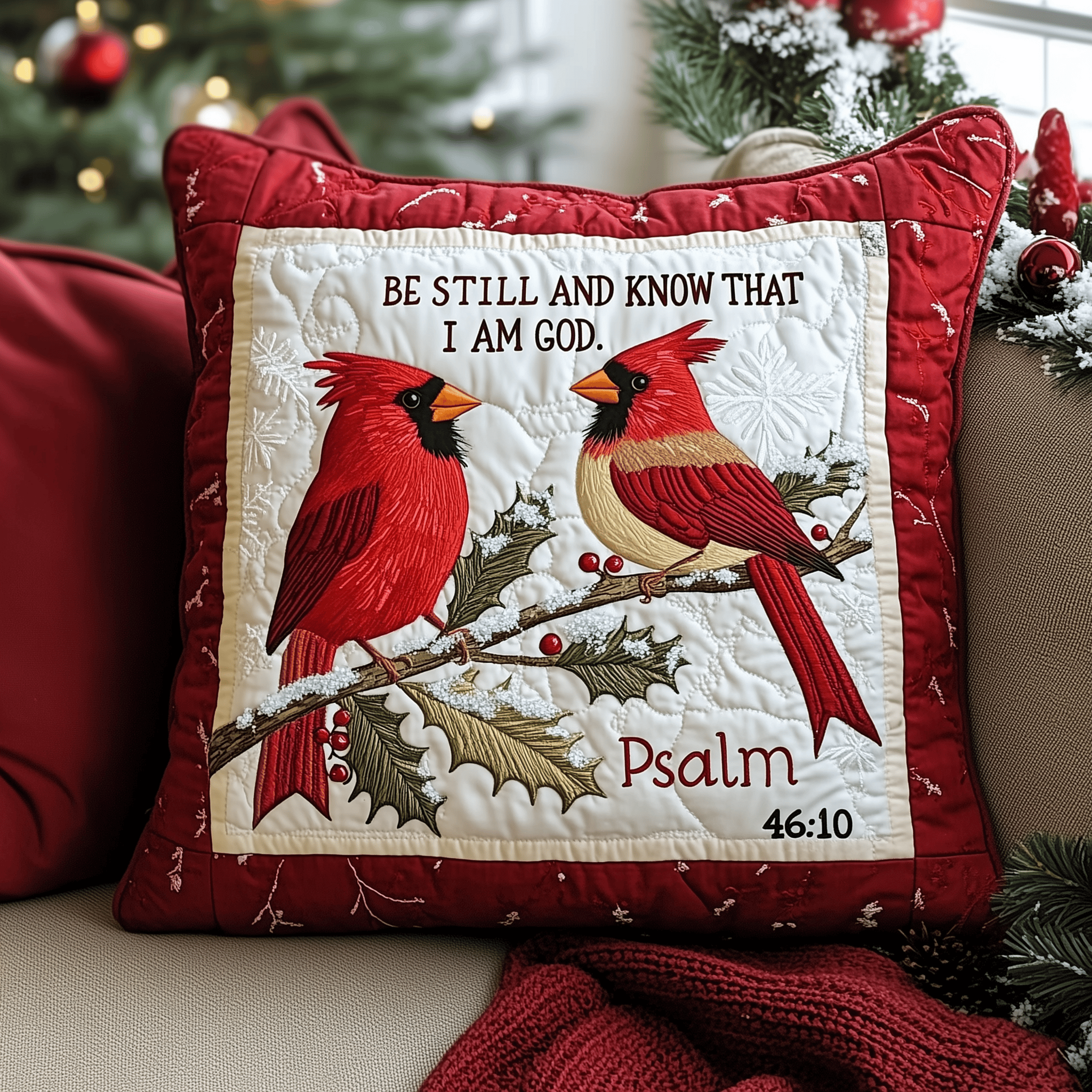 Cardinal Quilted Pillow Be Still And Know That I Am God Room Decor Memorial Gift For Her