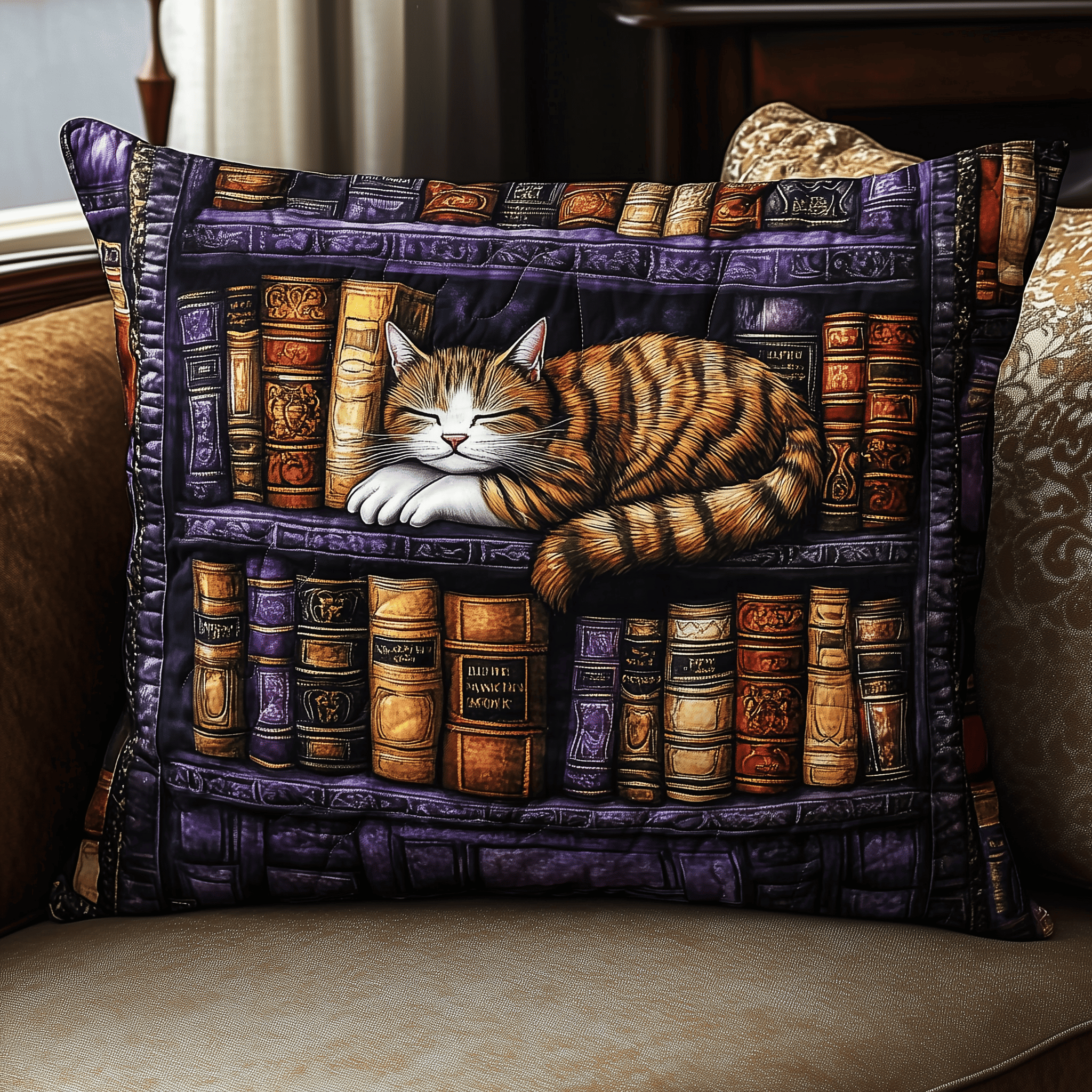 Cat Bookcase Quilted Pillow Best Unique Book Themed Gifts For Cat Lover Room Decoration