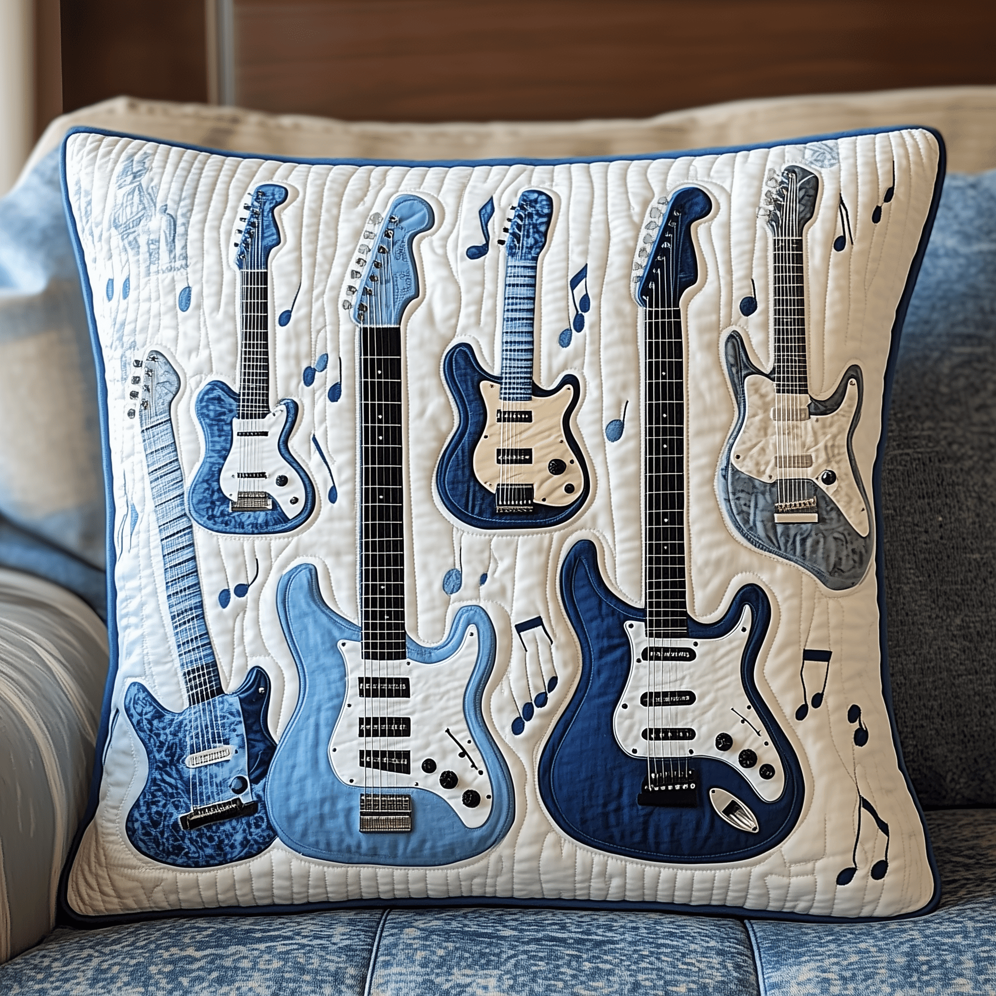 Electric Guitar Quilted Pillow Elegant Music Note Great Decoration Ideas Gift For Him
