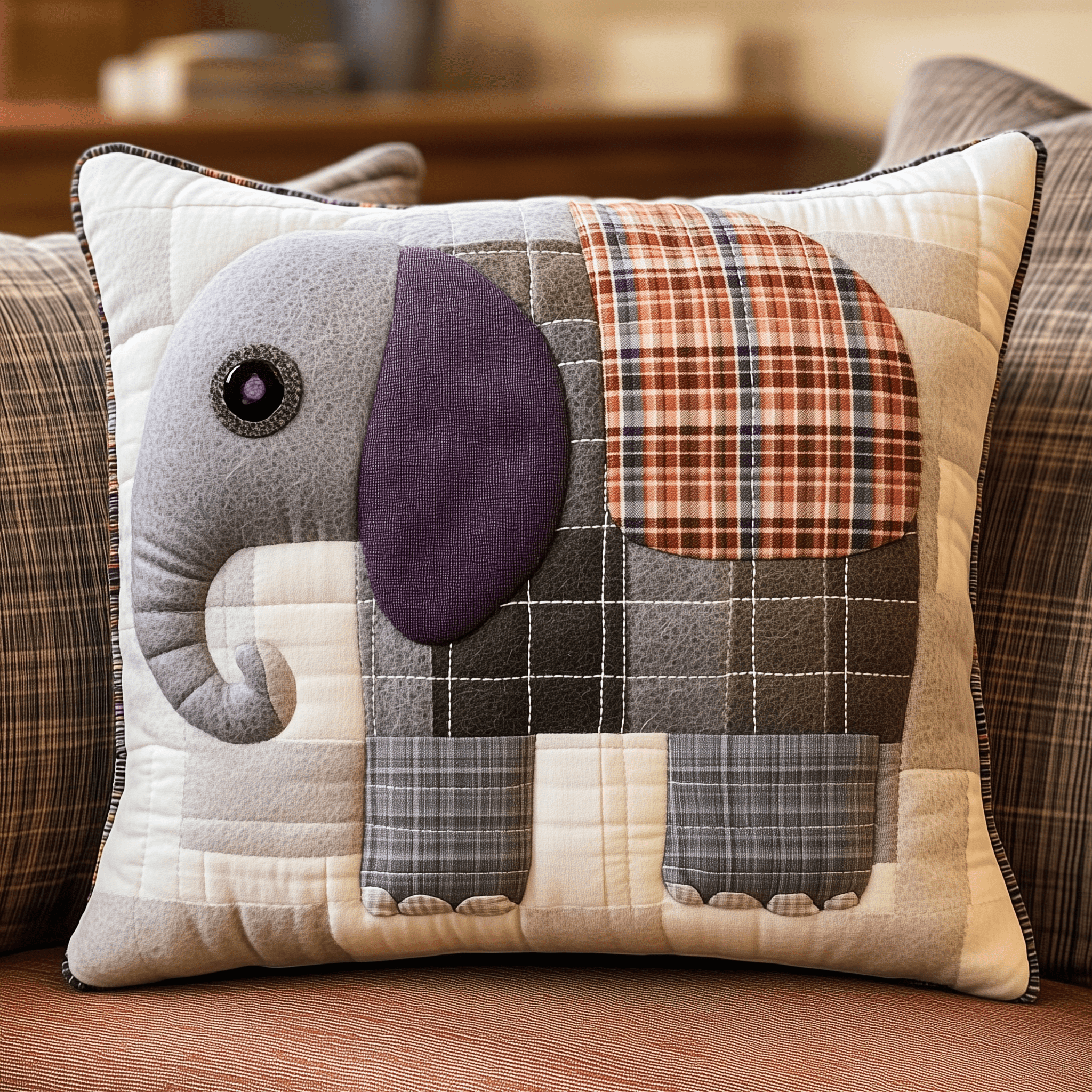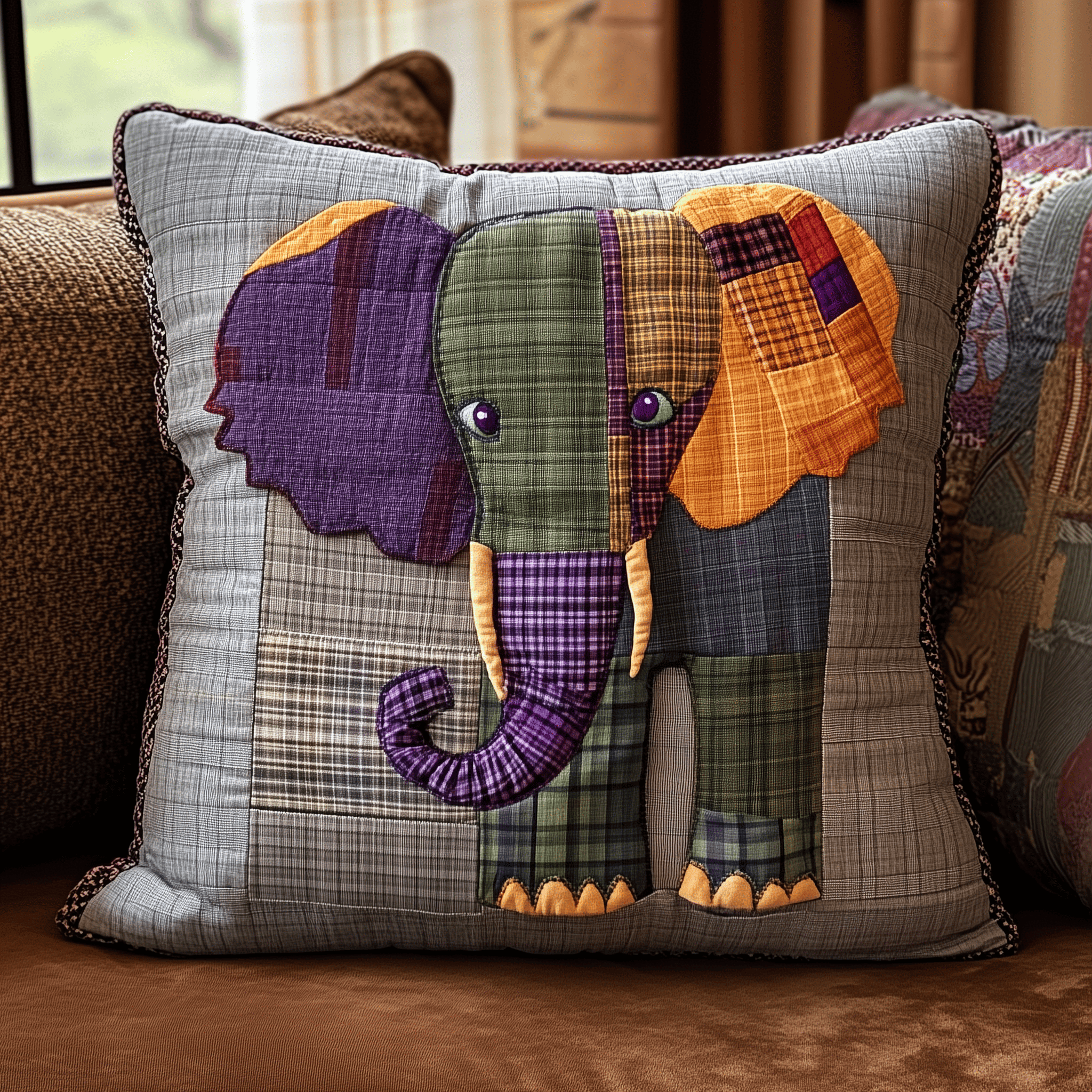 Elephant Patchwork Quilted Pillow Elegant Color Sofa Decoration Gift For Elephant Lovers
