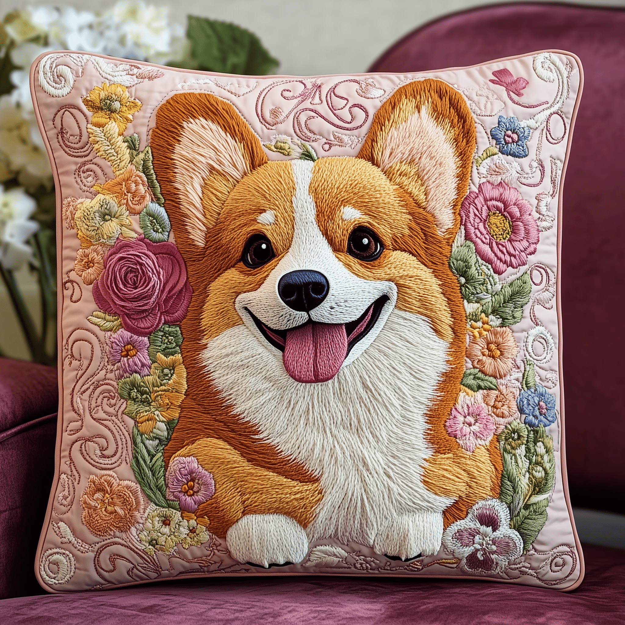 Floral Corgi Quilted Pillow Pretty Flower Gift For Corgi Lovers Decoration