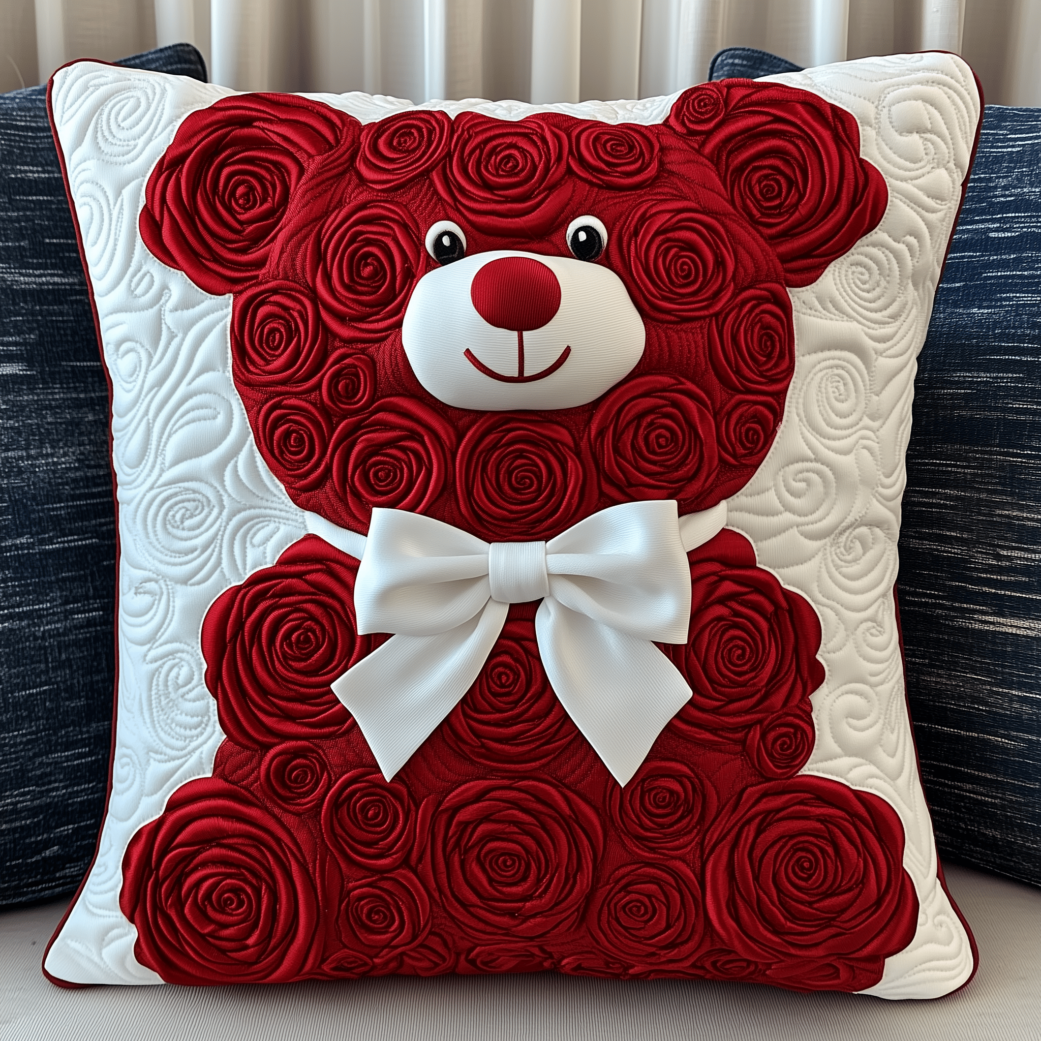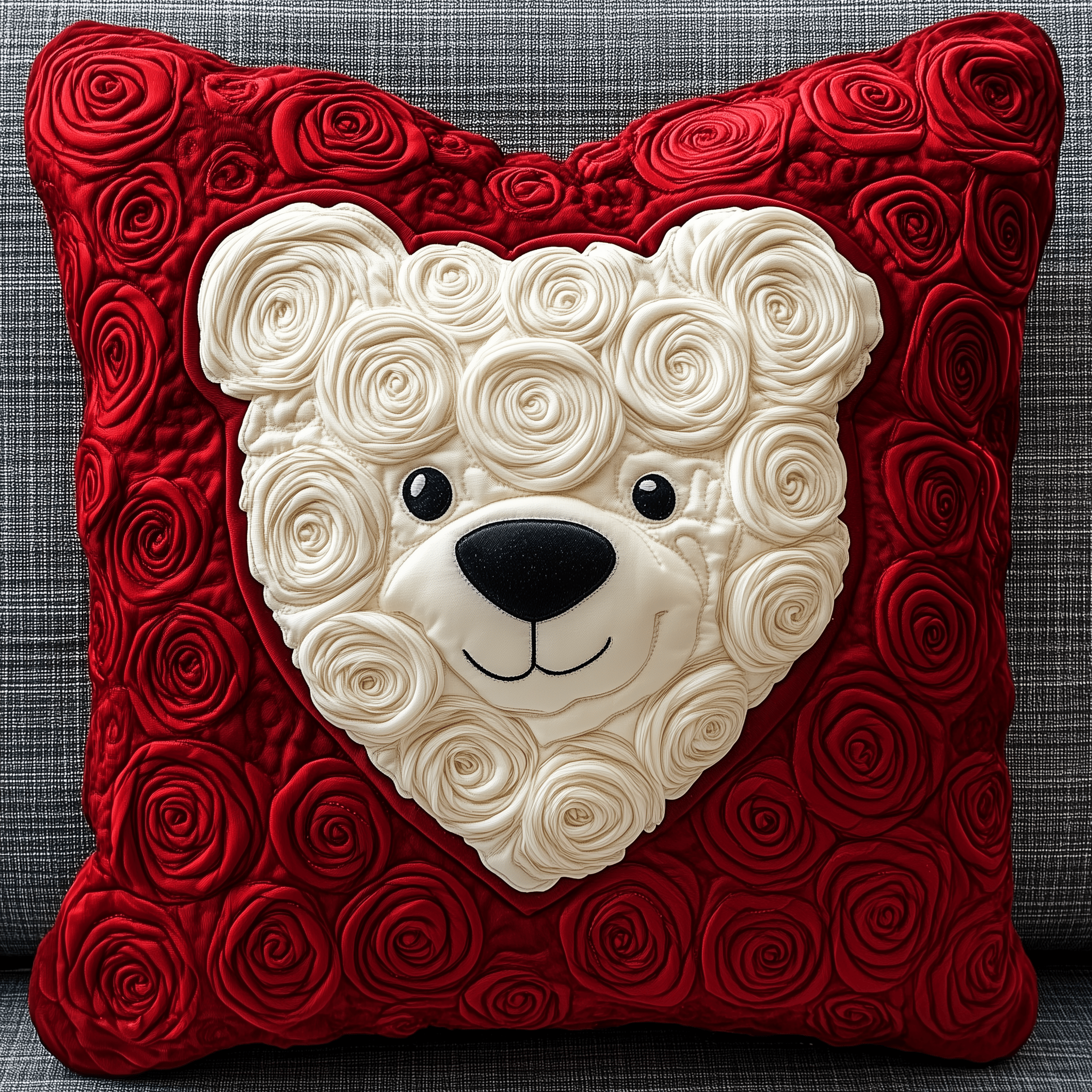 Bear Roses Quilted Pillow Beautiful Rose Themed Decoration Gift For Bear Lovers