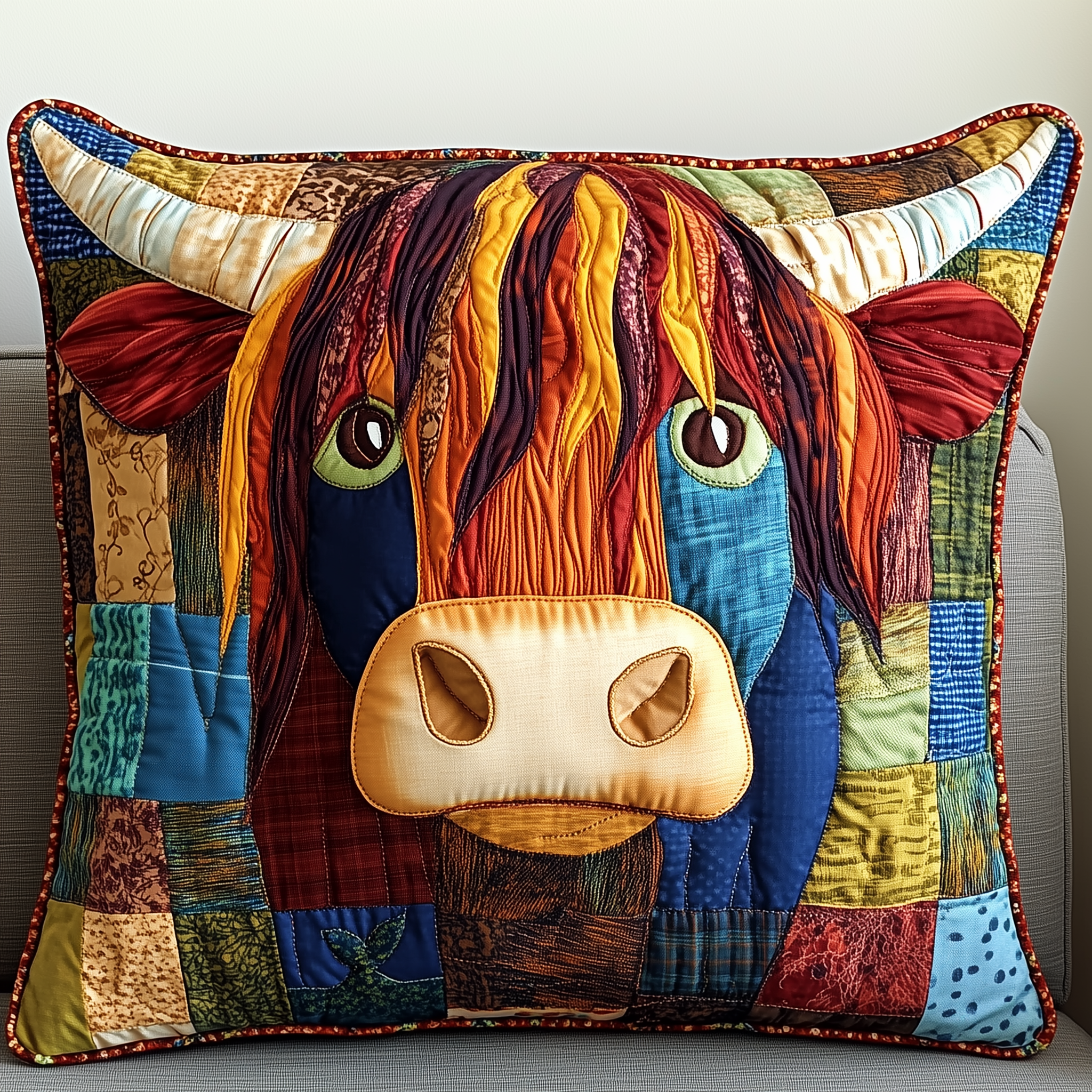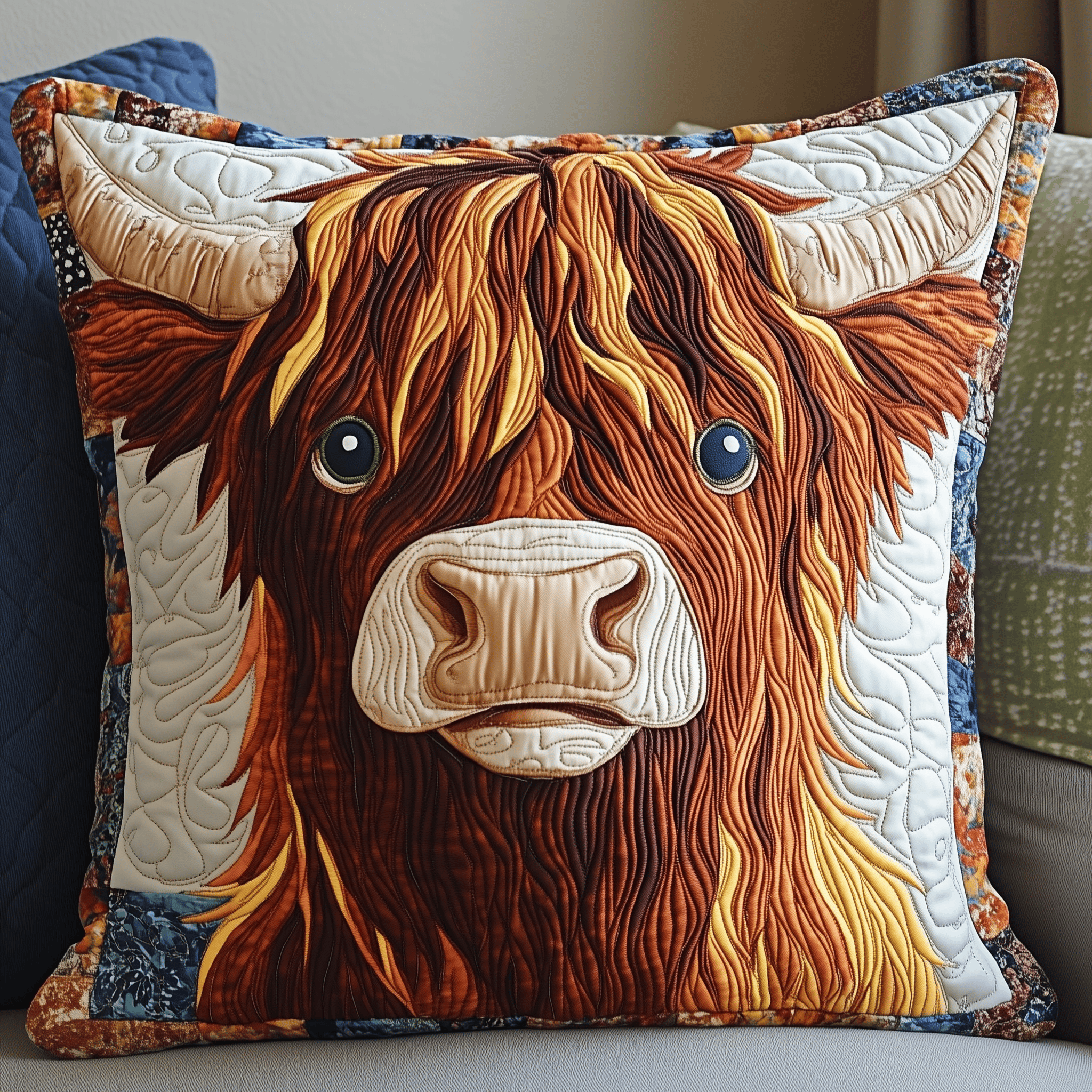 Highland Cow Quilted Pillow Funky Cow Decoration Merch Ideas For Your Grandpa
