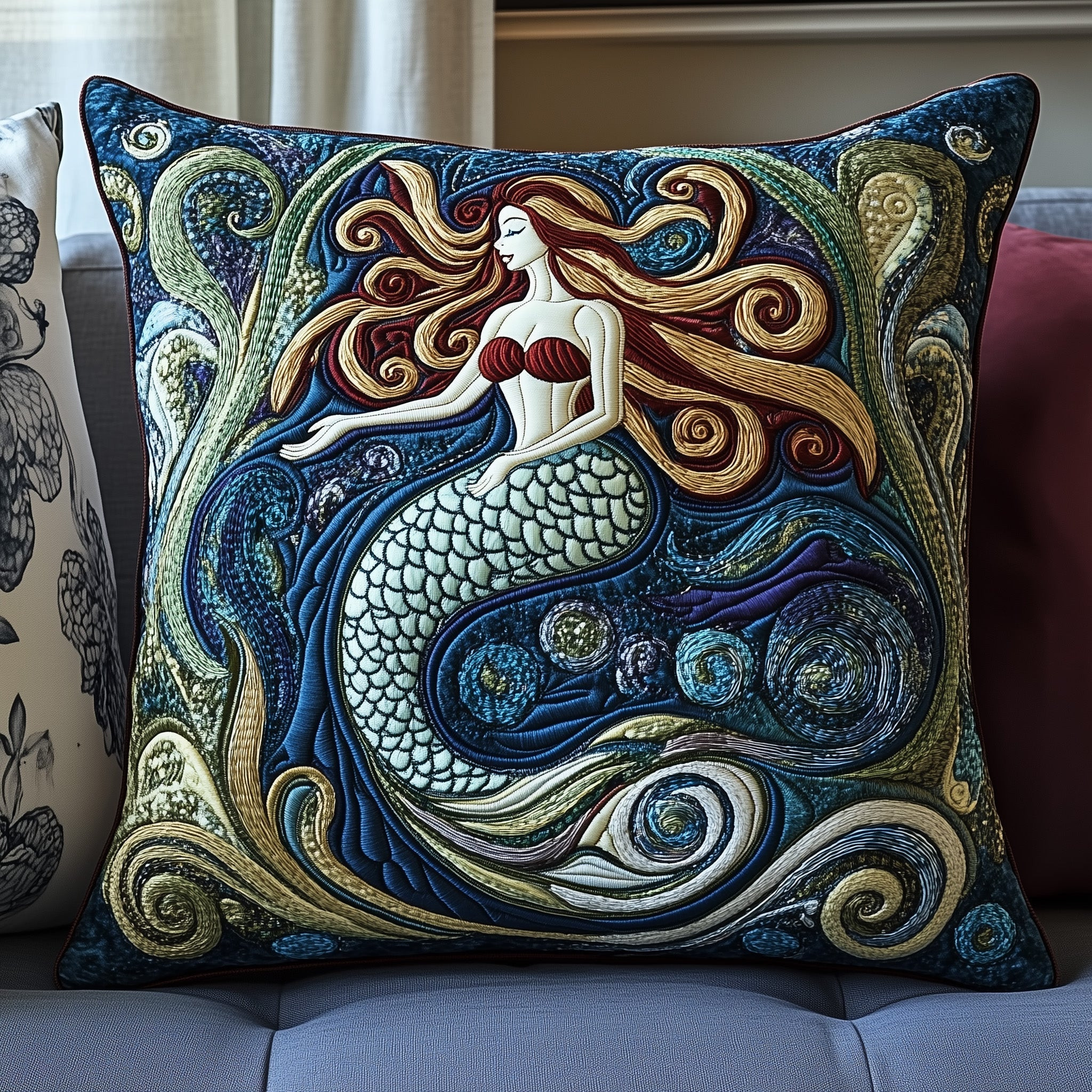 Mermaid Quilted Pillow Majestic Mermaid Living Room Decoration Gifts For Wife
