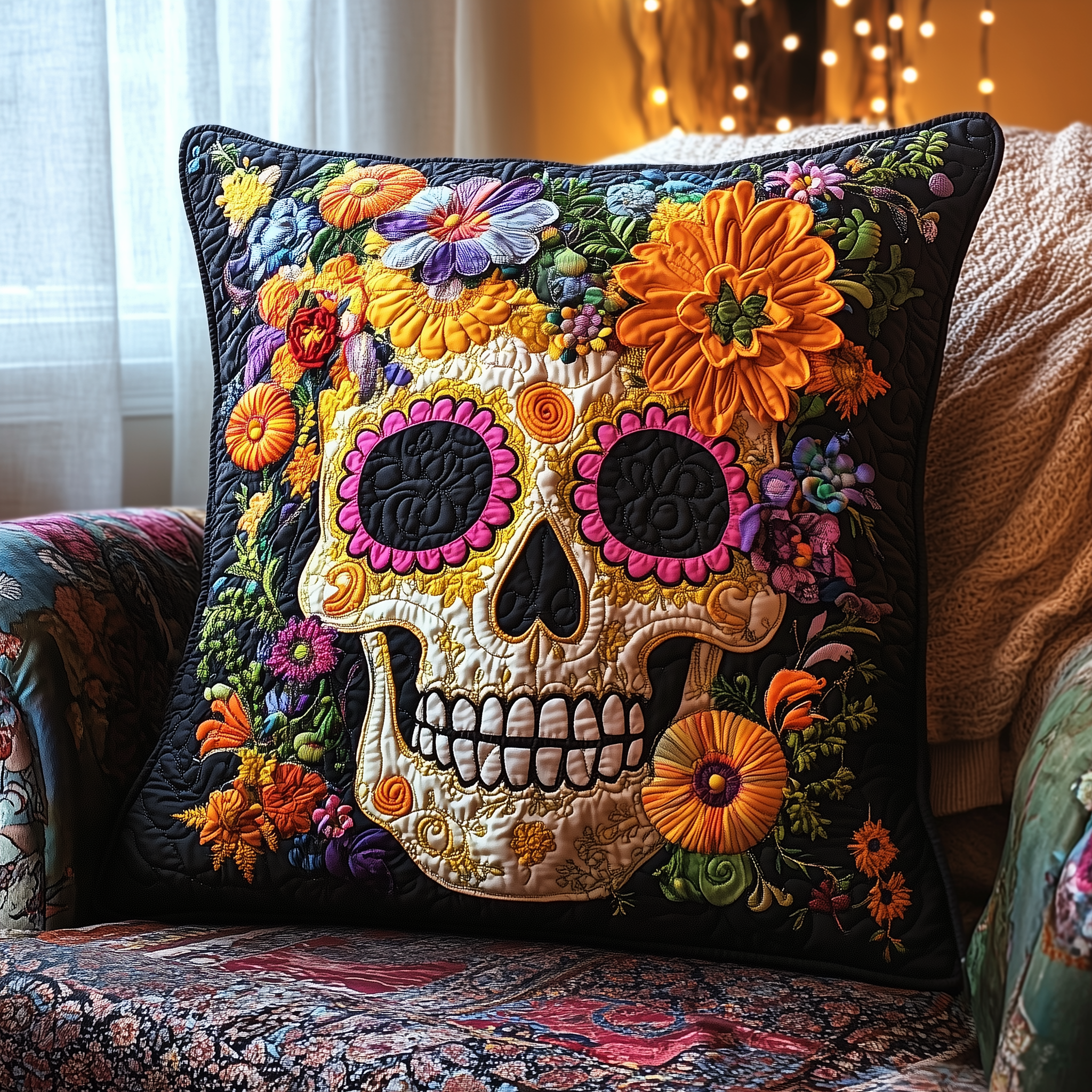 $25.95 – $34.95Price range: $25.95 through $34.95Skull Flower Quilted Pillow Skull Living Room Decoration Gift Ideas For Her
