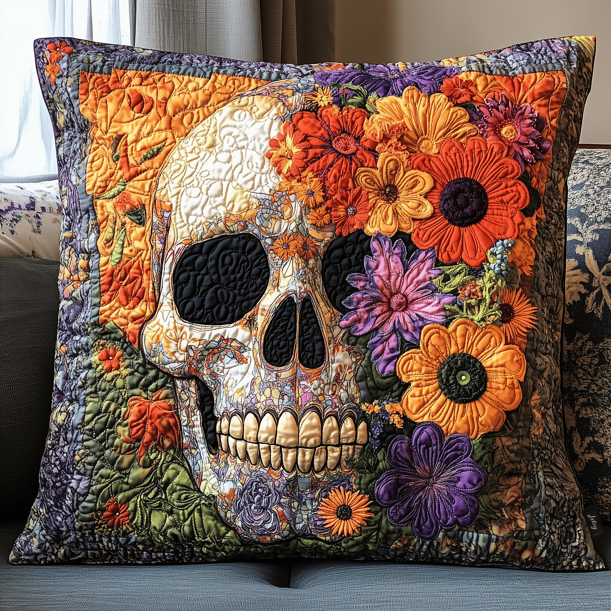 $25.95 – $34.95Price range: $25.95 through $34.95Skull Floral Quilted Pillow Beautiful Skull Present For Your Brother Decoration