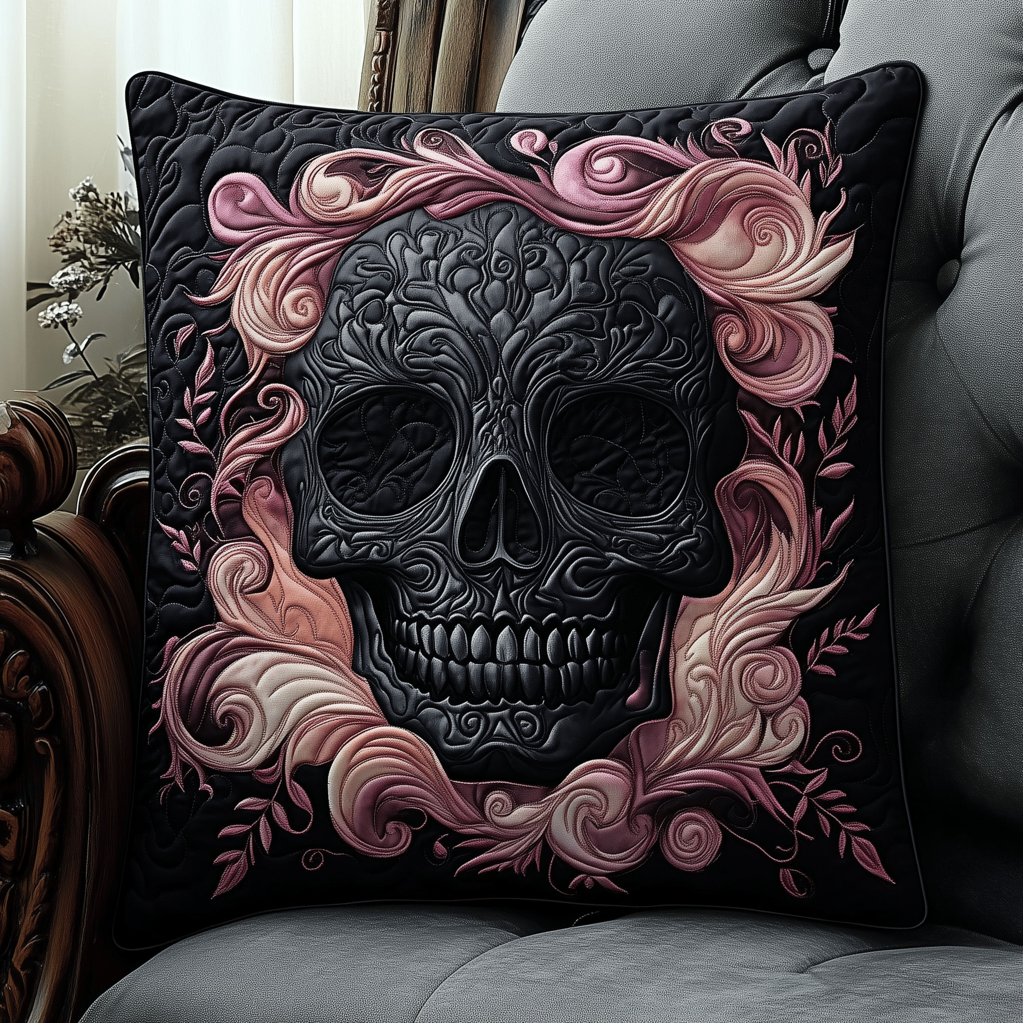 $25.95 – $34.95Price range: $25.95 through $34.95Skull Quilted Pillow Elegant Dark Themed Gift For Skull Lovers Home Decoration