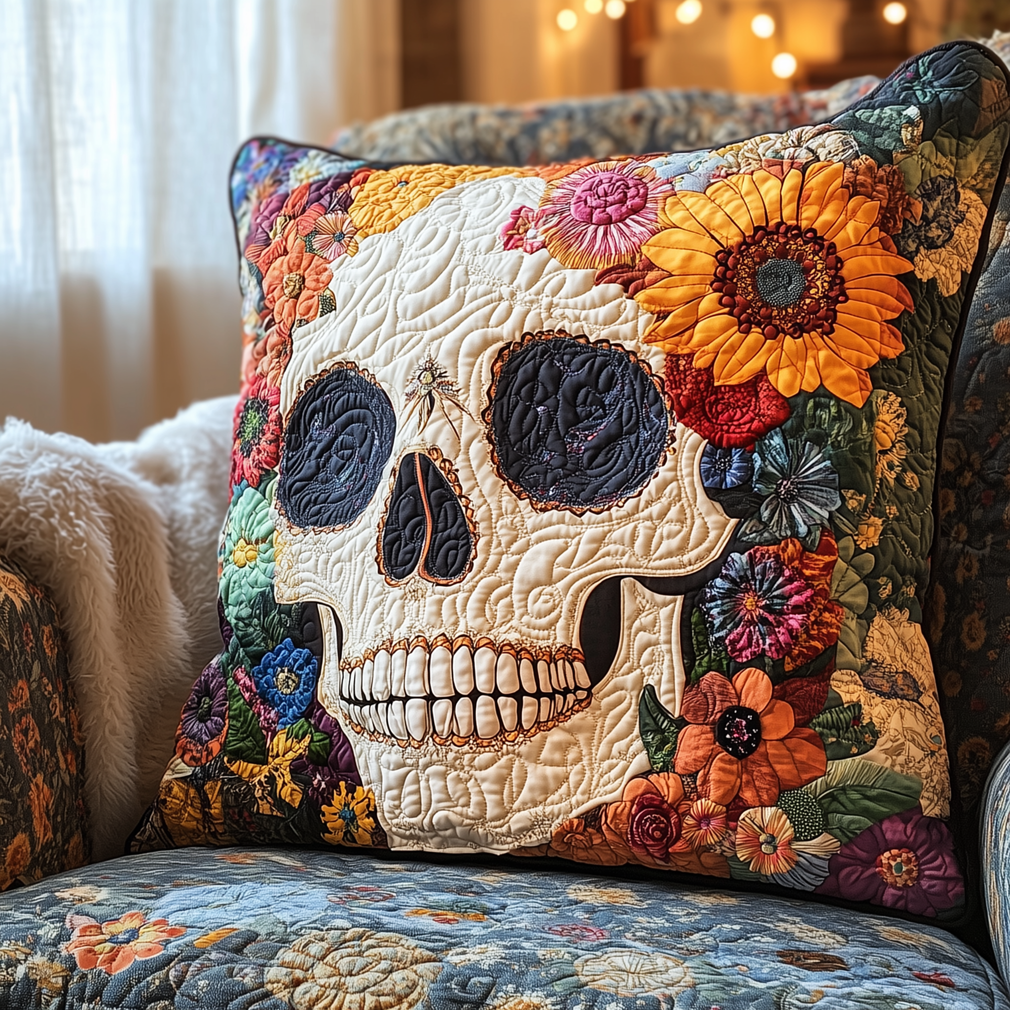 $25.95 – $34.95Price range: $25.95 through $34.95Skull Quilted Pillow Floral Skull Great Decoration Merch Ideas For Adults