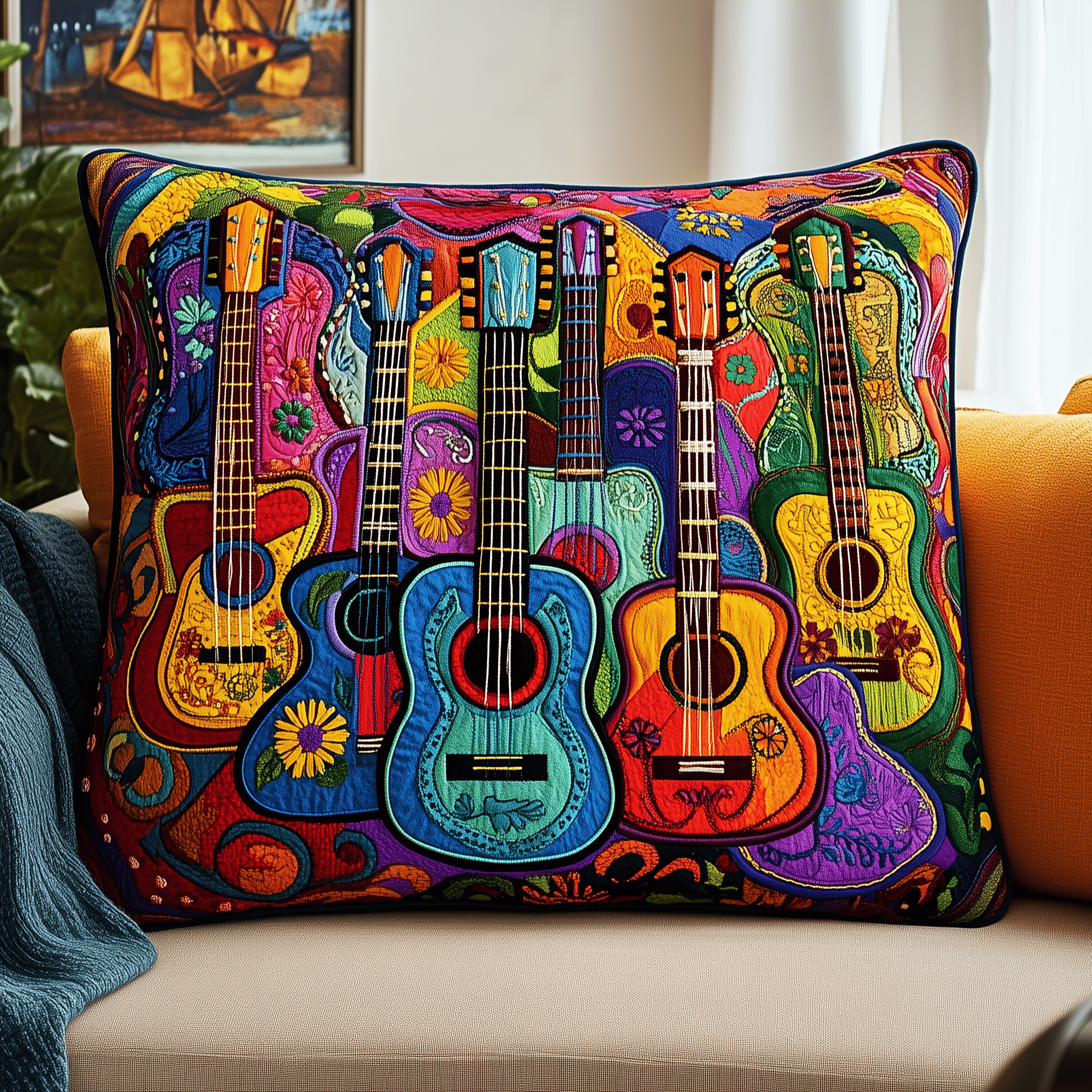 $25.95 – $34.95Price range: $25.95 through $34.95Strings Guitars Quilted Pillow Vibrant Guitar Present For Your Musician Friend Decor