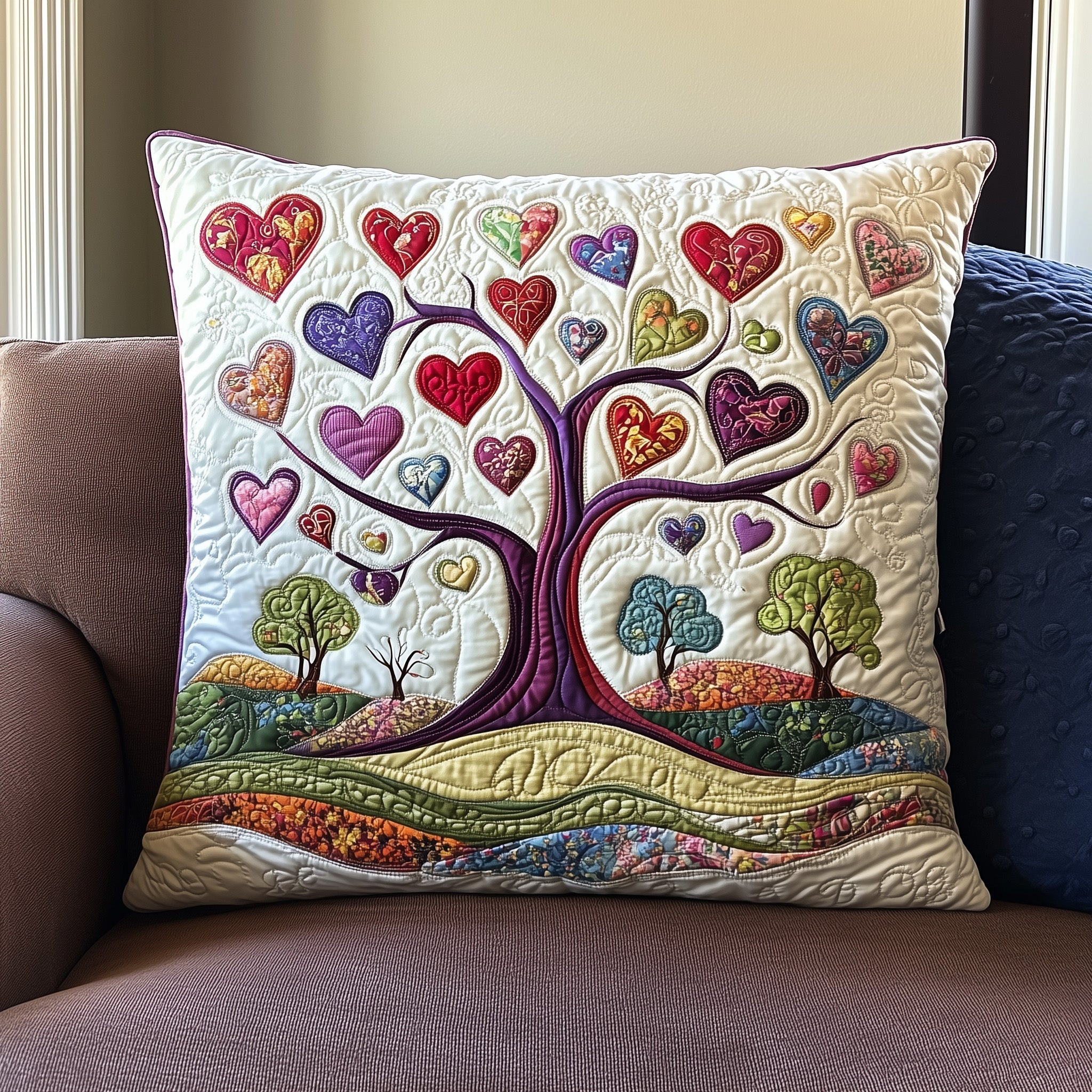 Tree Of Heart Quilted Pillow Heart Themed Gift For Tree Lover Living Room Decoration