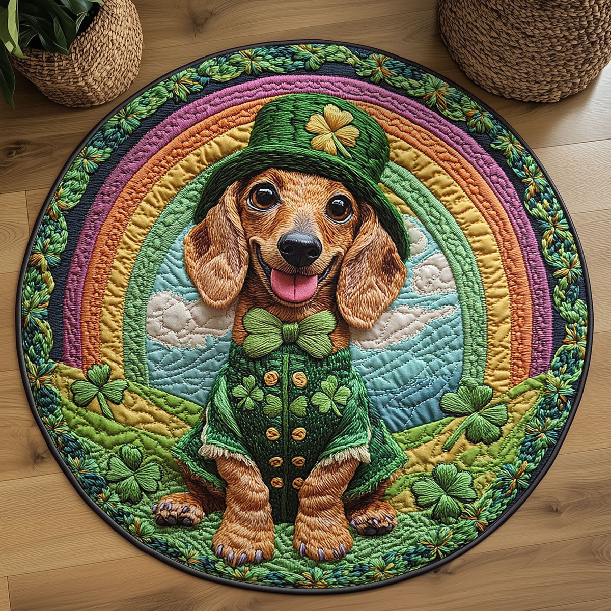 Rushgleam Dachshund Parade Quilted Round Mat Holiday Indoor Decor St Patricks Day Gift For Dog Lovers