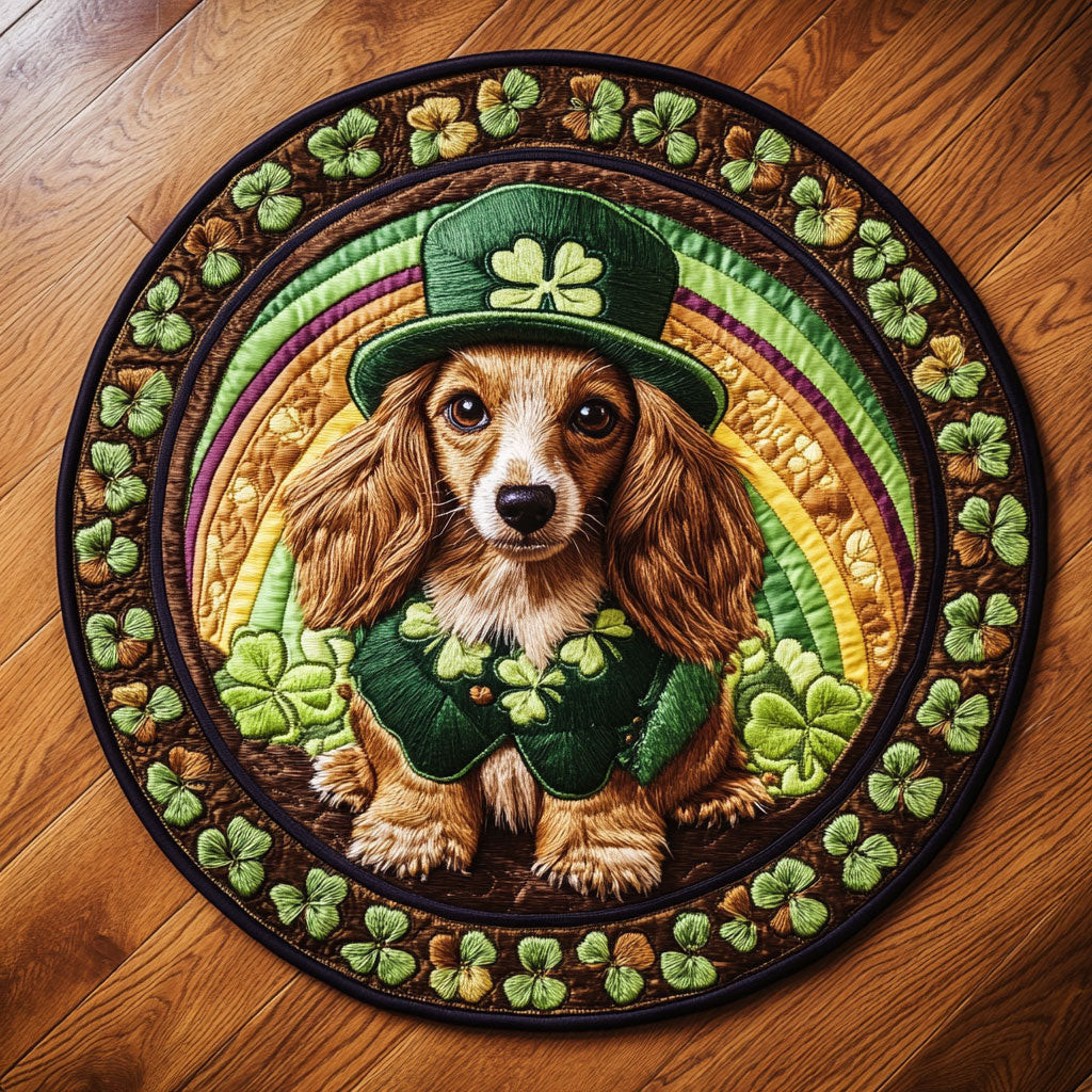 Rushgleam Dachshund Luck Quilted Round Mat Holiday Decorations St Patrick’s Day Gift Ideas For Her