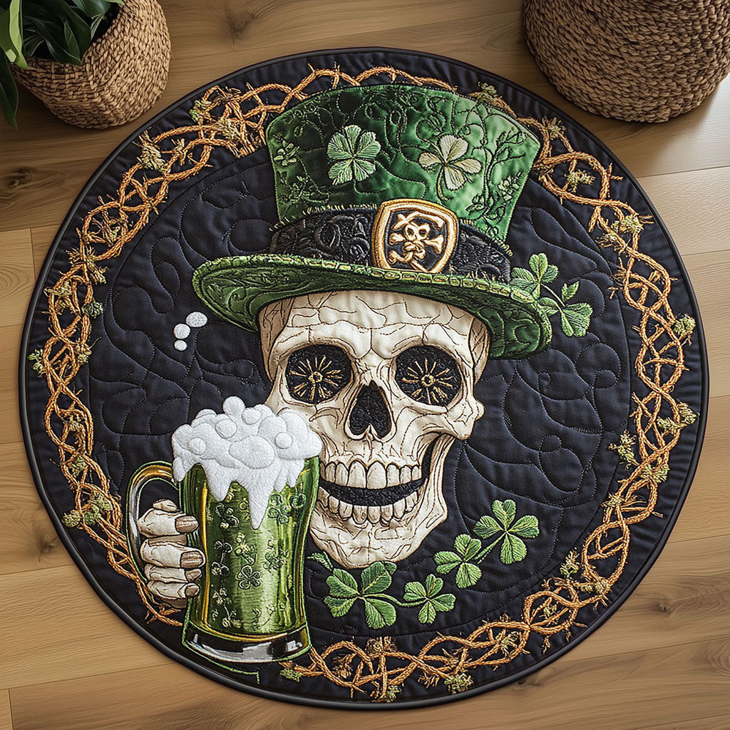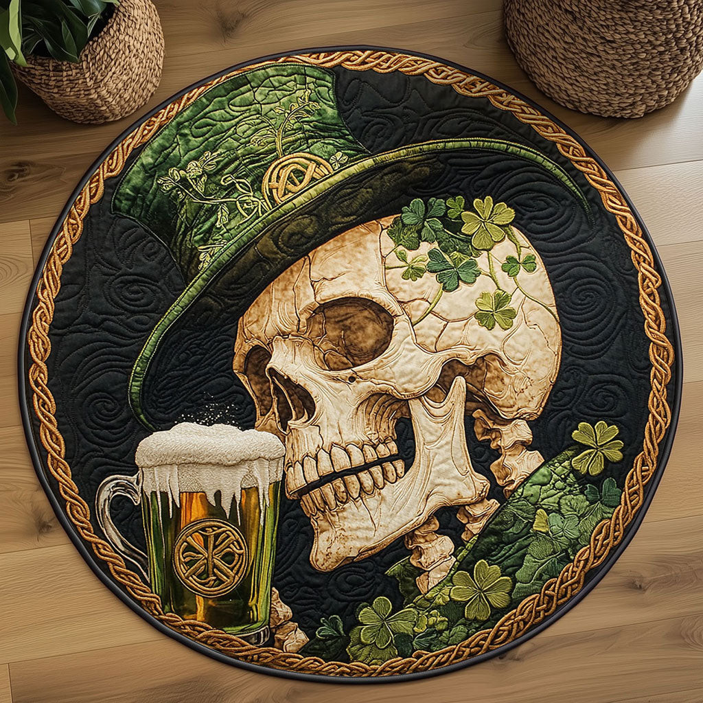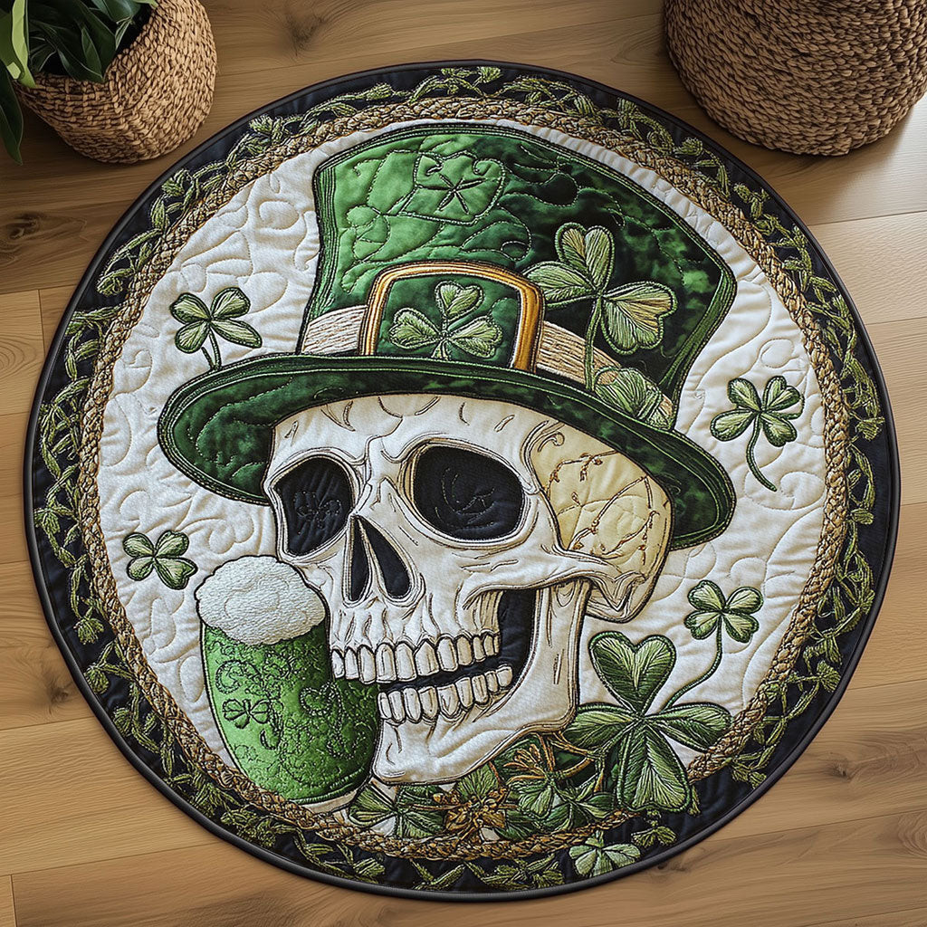 Rushgleam Irish Skull Quilted Round Mat Shamrock Day Decor St Patricks Day Gifts For Lovers