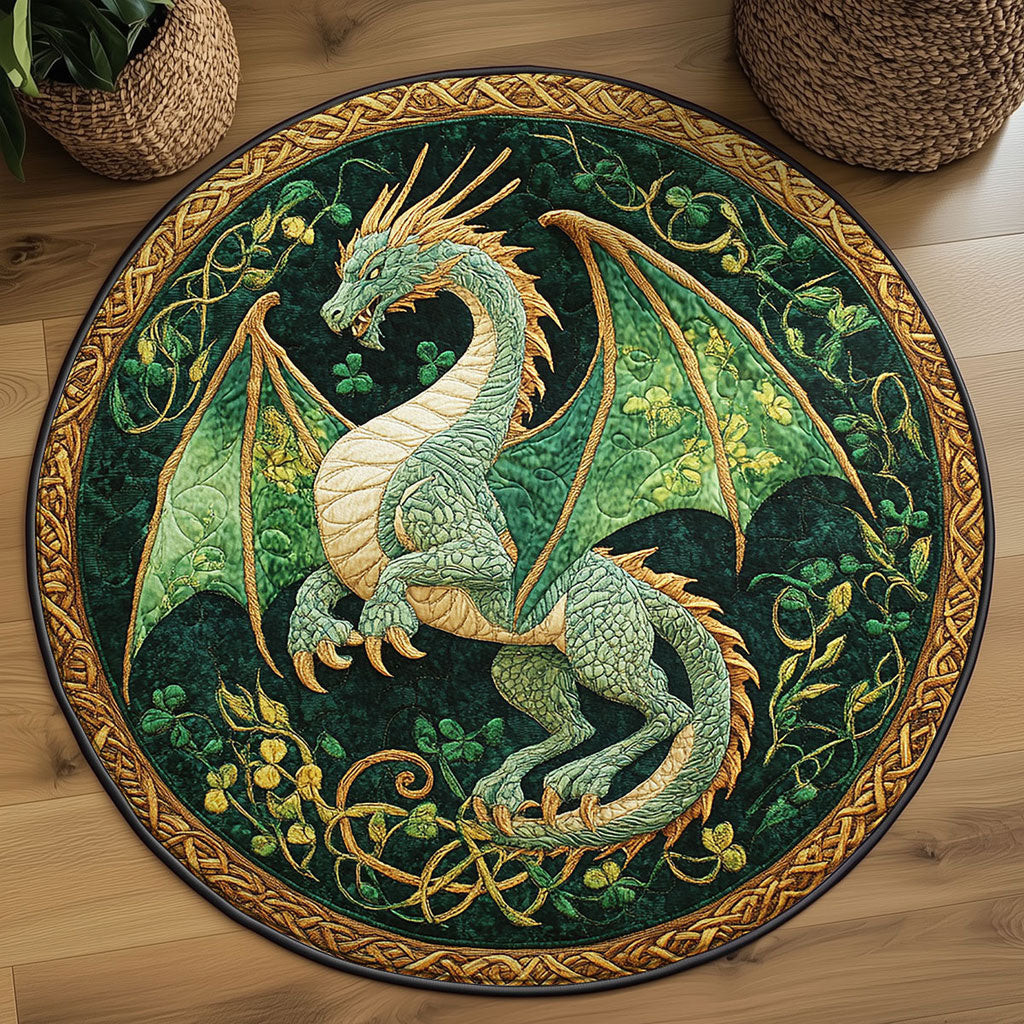 Rushgleam Iron Dragon Quilted Round Mat House Decor Items St Patrick’s Day Gift For Dragon Lovers
