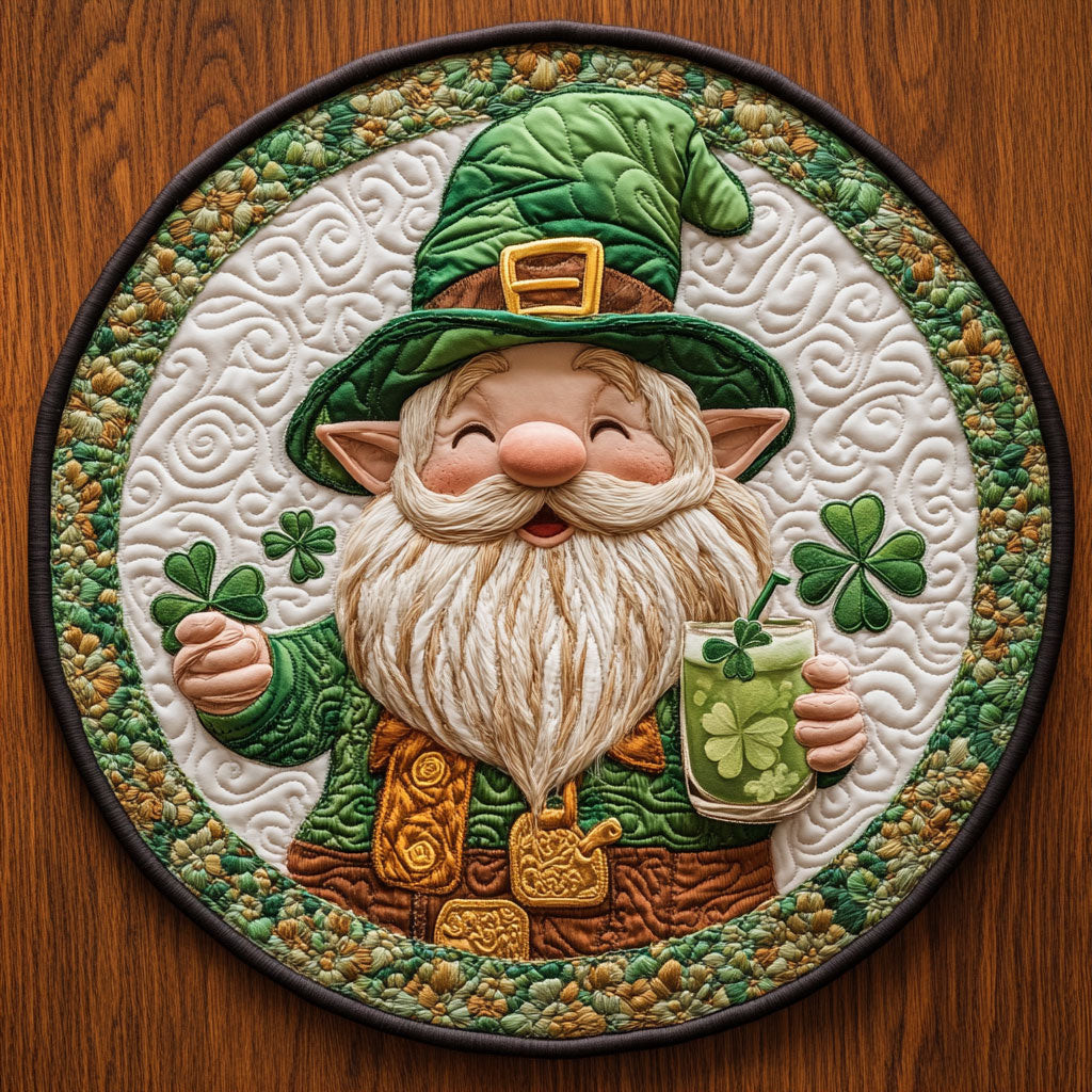 Rushgleam Lucky Brew Gnome Quilted Round Mat St Pattys Day Mat St Patrick Gifts For Friends