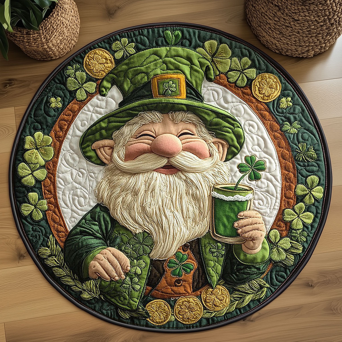 Rushgleam Lucky Clover Gnome Quilted Round Mat Holiday Indoor Decor St Patricks Day Gift Ideas