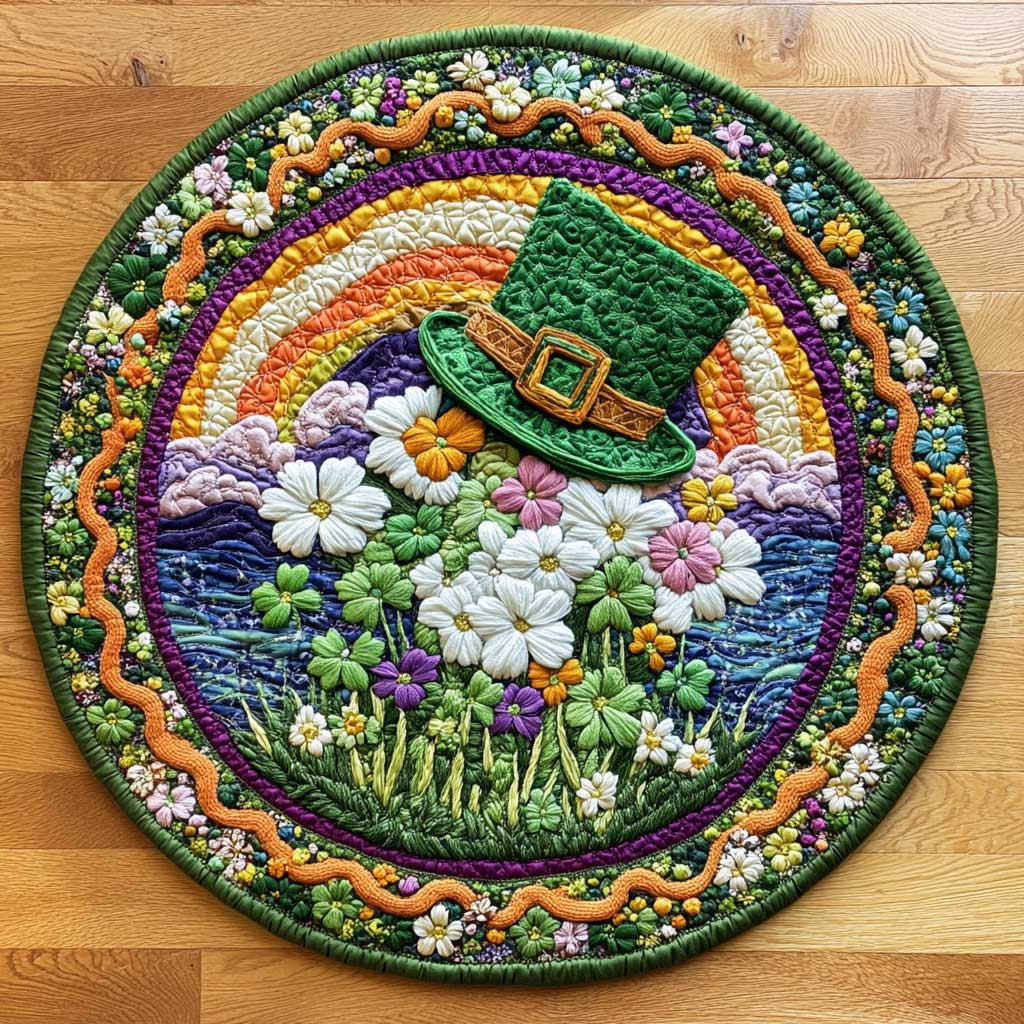 Rushgleam Lucky Shamrock Rainbow Quilted Round Mat Holiday Decorations St Patrick’s Day Gift Ideas