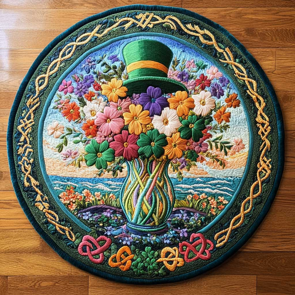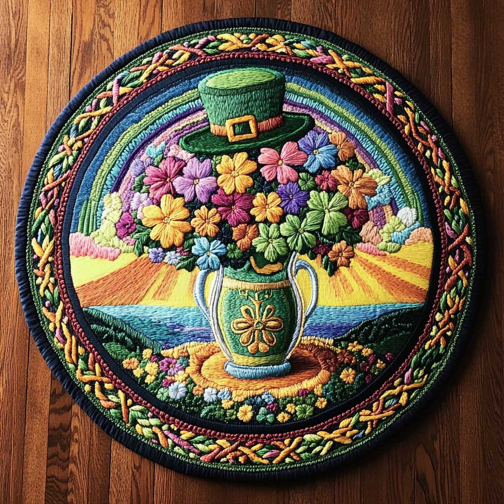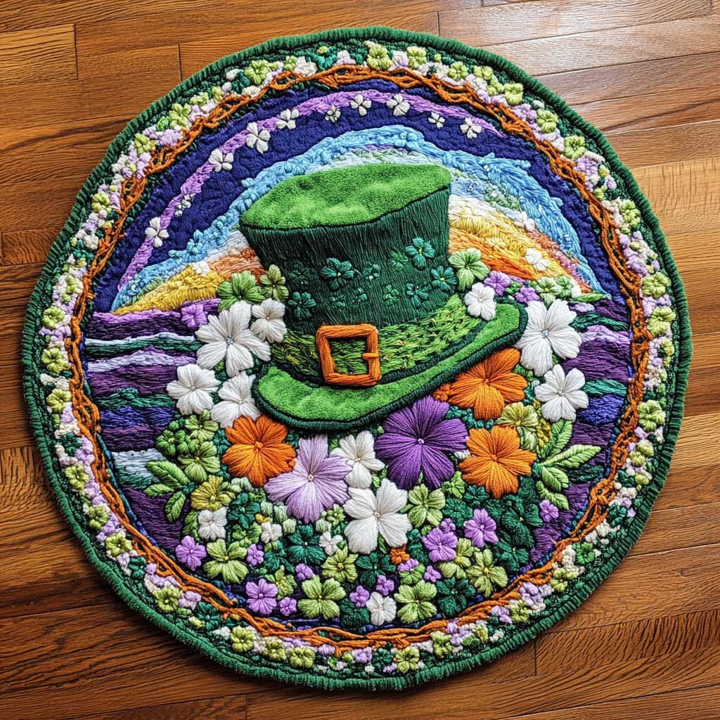 Rushgleam Lucky Shamrock Magic Quilted Round Mat House Decor St Patrick’s Day Gift For Women