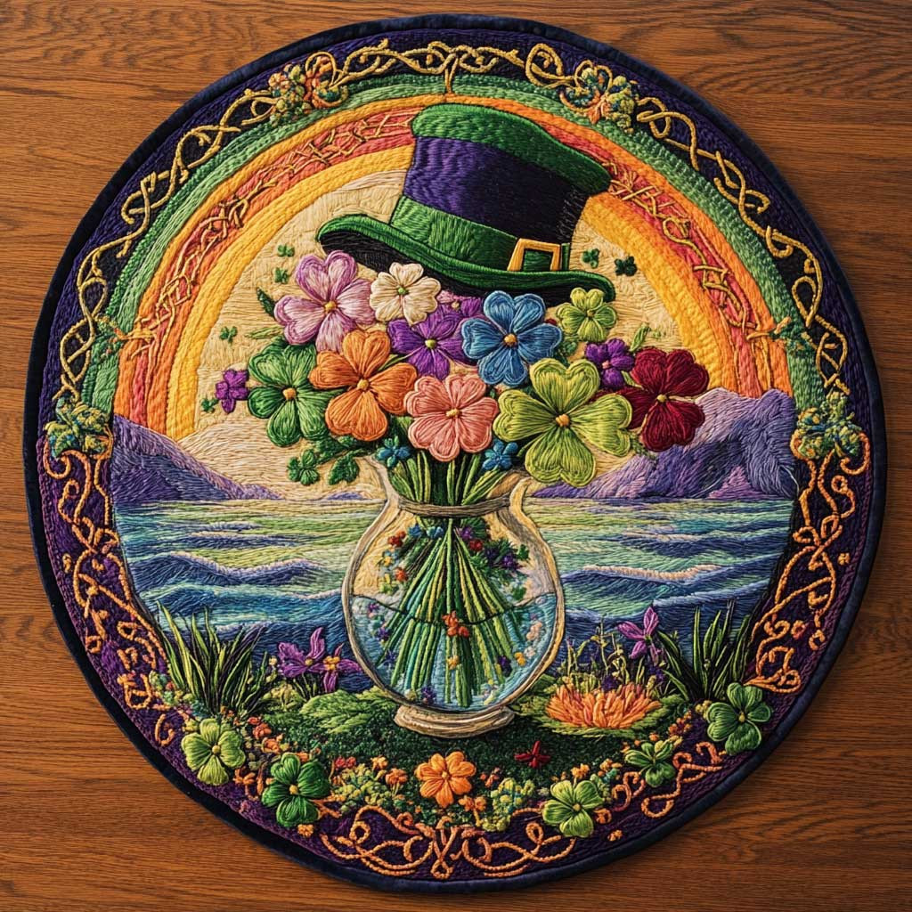 Rushgleam Lucky Shamrock Wishes Quilted Round Mat House Decor St Patrick’s Day Gift For Lovers