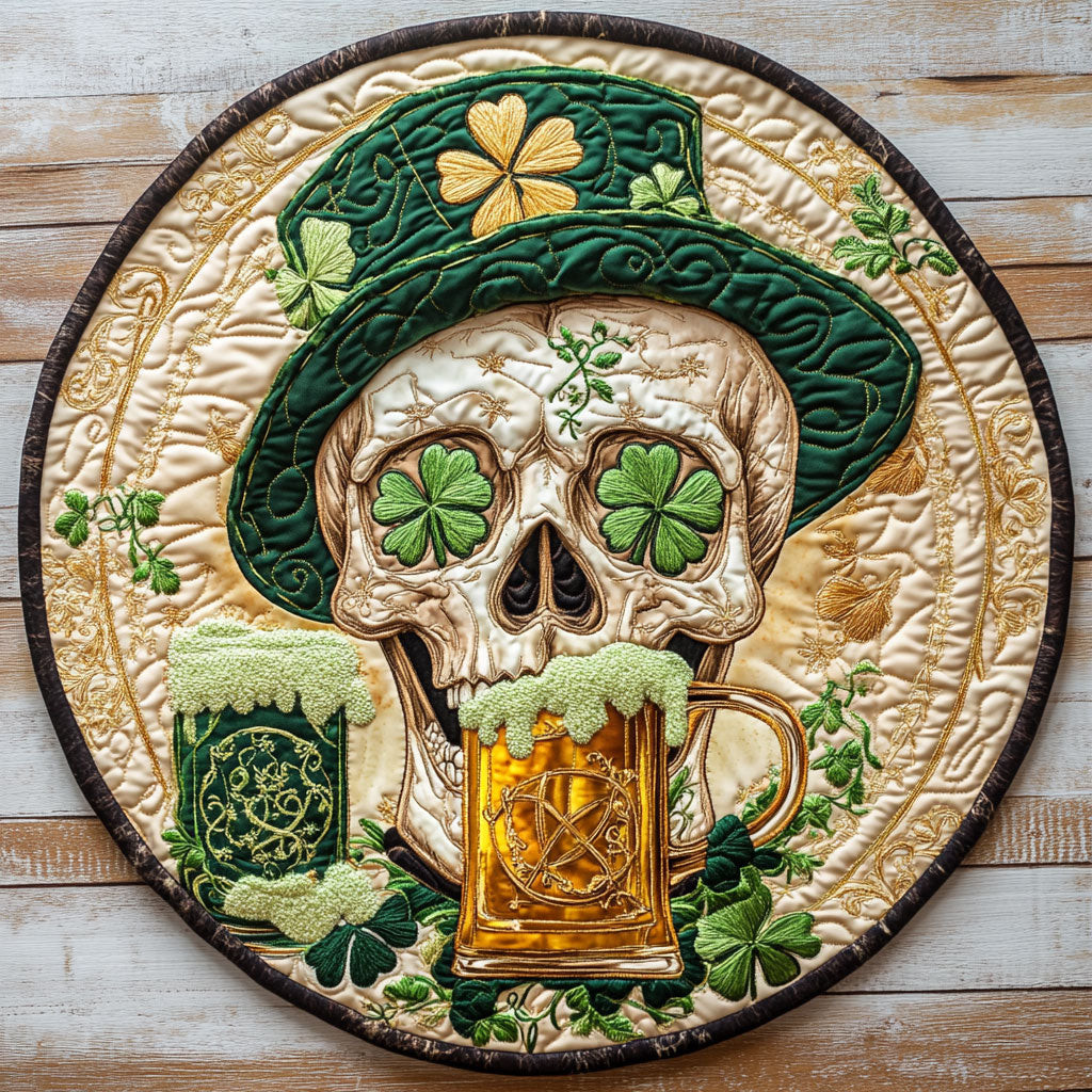Rushgleam Lucky Skull Quilted Round Mat St Paddy’s Day Mat St Patrick’s Day Gifts For Boyfriend