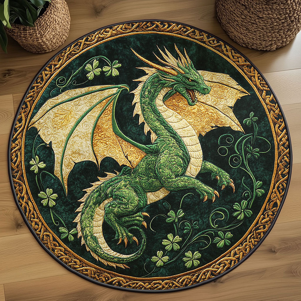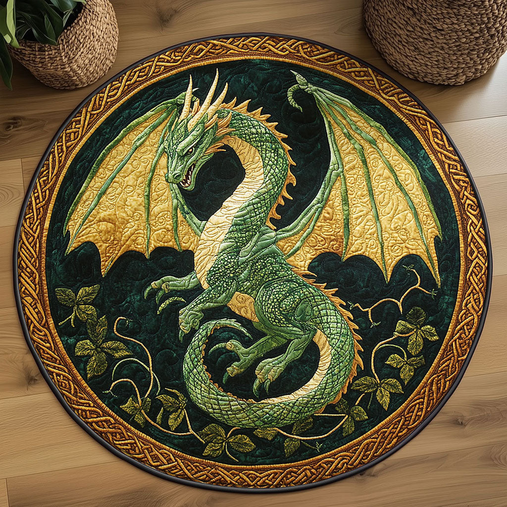 Rushgleam Mystic Dragon Quilted Round Mat House Decor St Patrick’s Day Gift For Dragon Lovers