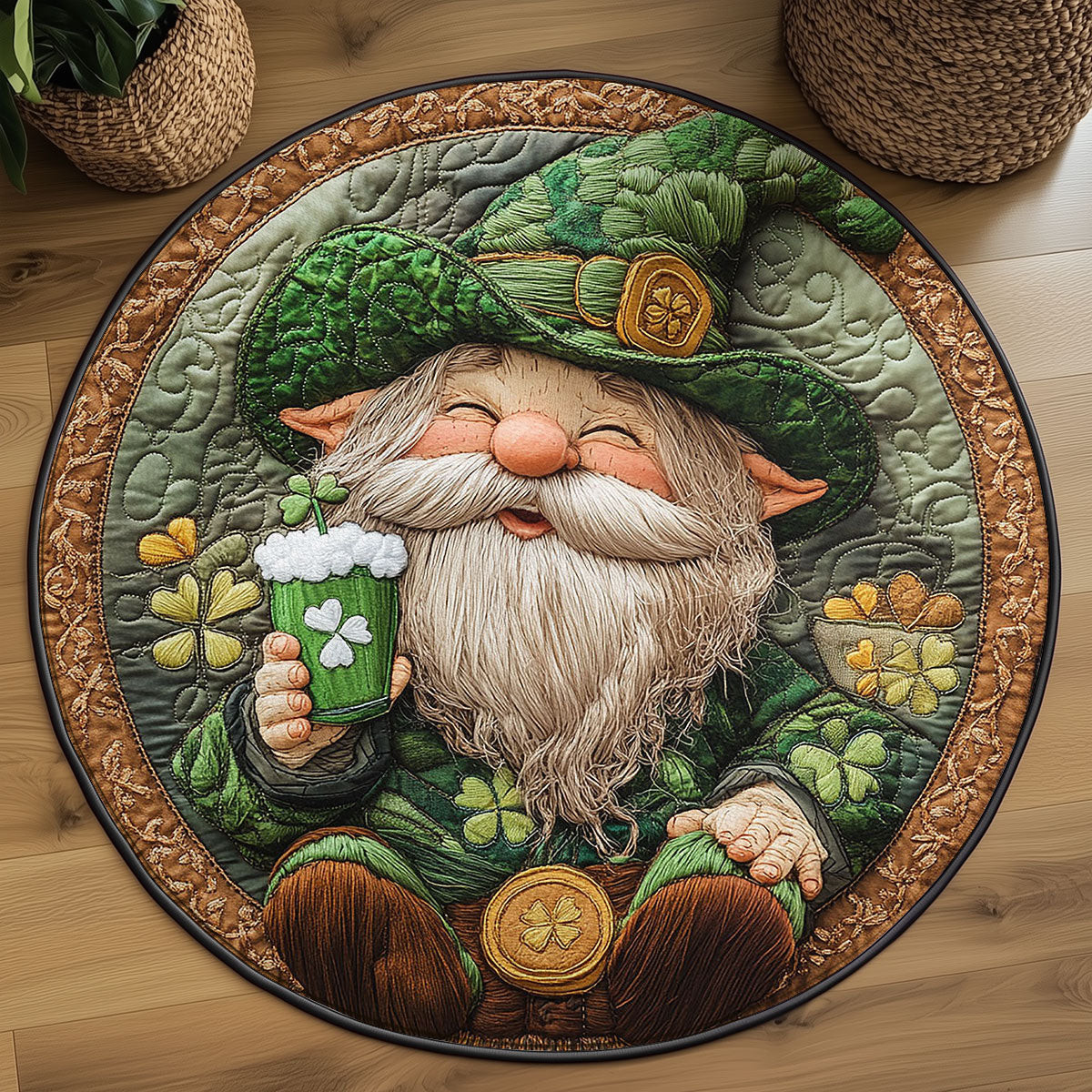 Rushgleam Rainbow Gnome Gold Quilted Round Mat Holiday Decorations St Patrick’s Day Gift Idea