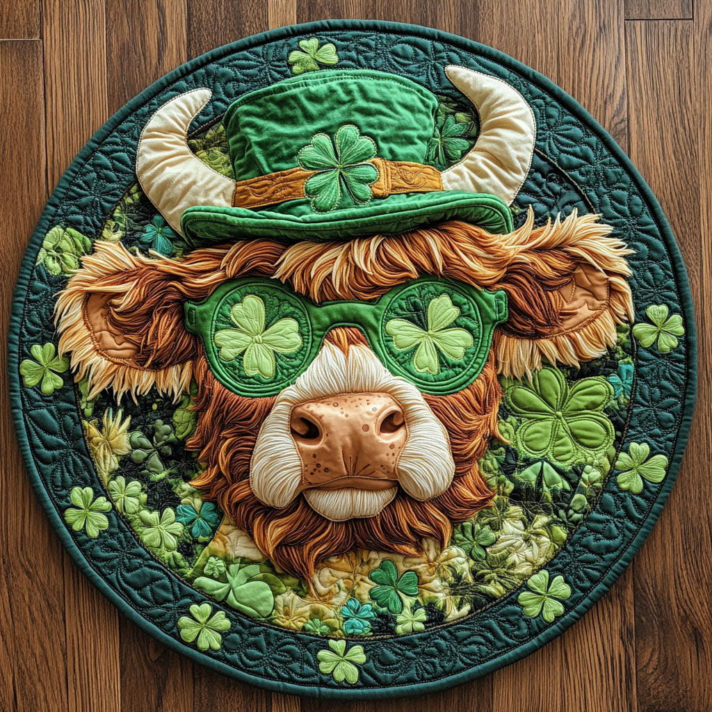 Rushgleam Shamrock Cow Quilted Round Mat St Pattys Day Mat St Patrick Gifts For Cow Lovers