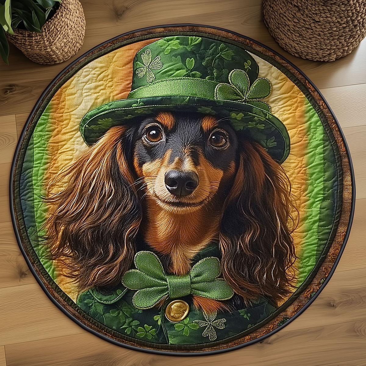 Rushgleam Shamrock Dachshund Quilted Round Mat House Decor St Patrick’s Day Gift For Dachshund Lovers