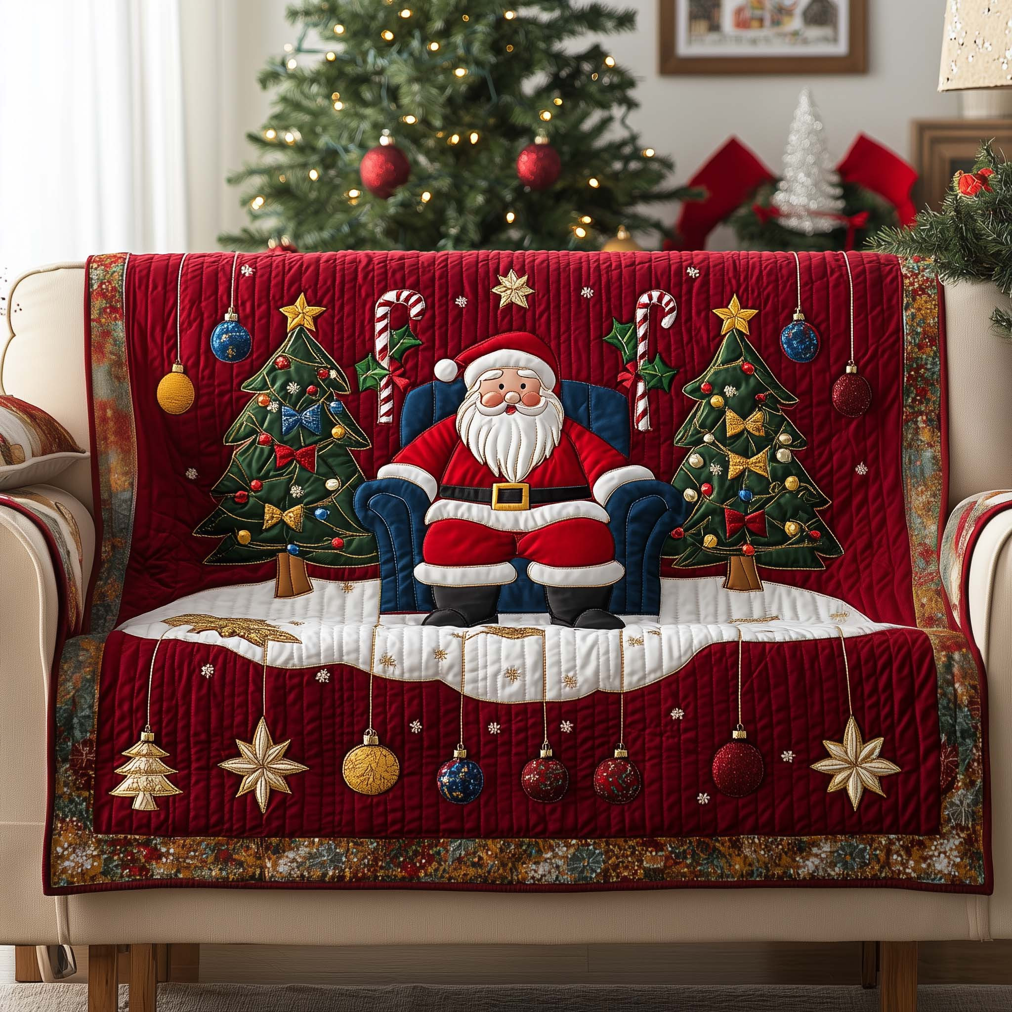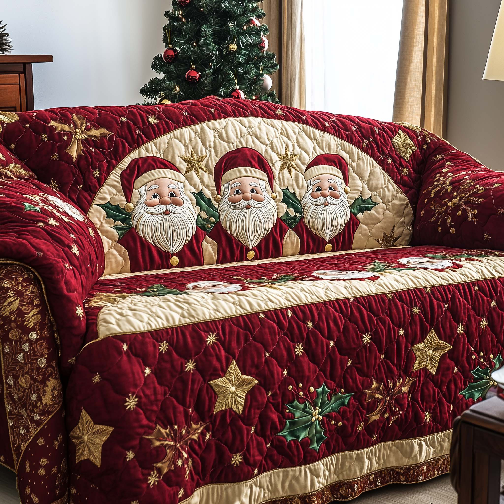 Rushgleam Santa Jolly Holly Quilted Sofa Cover Holiday Sofa Protector Santa Cool Christmas Gift Item