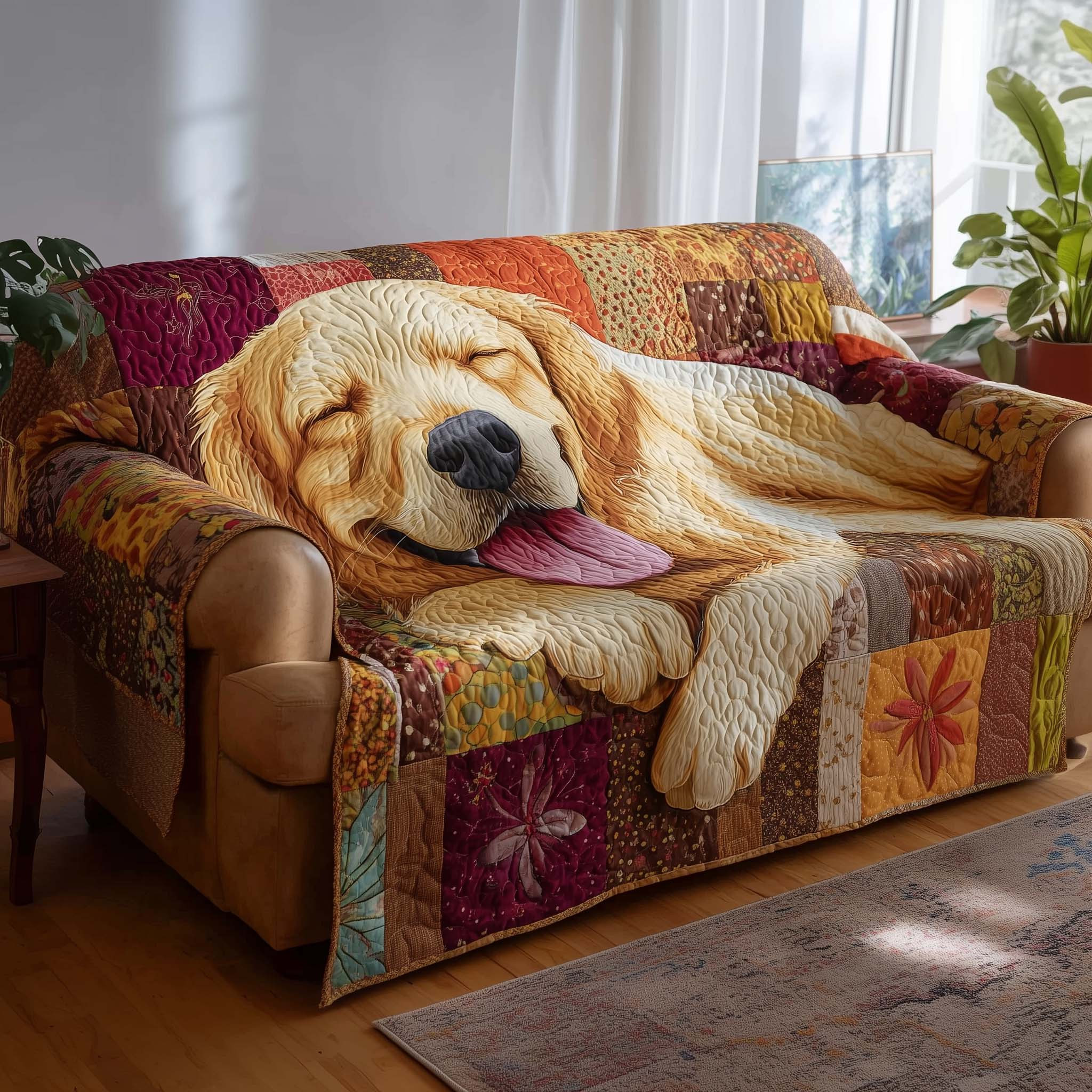 $45.99 – $74.99Price range: $45.99 through $74.99Sleepy Golden Retriever Quilted Sofa Cover Peaceful Dog Nap Unique Present For Smart Dog