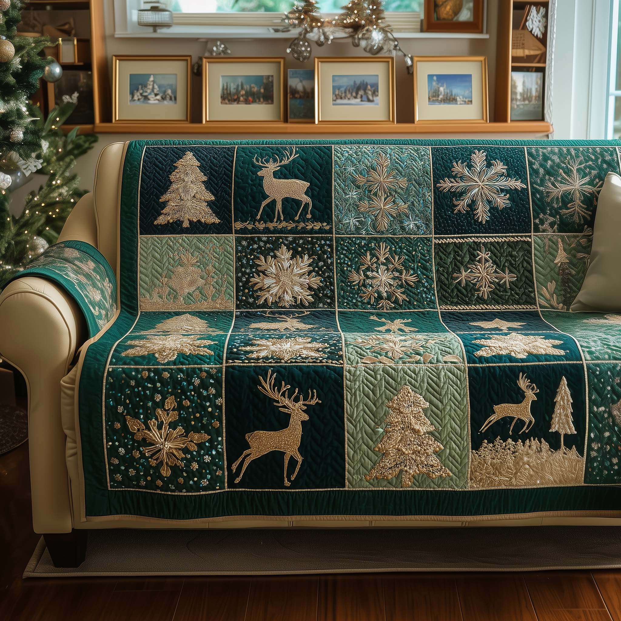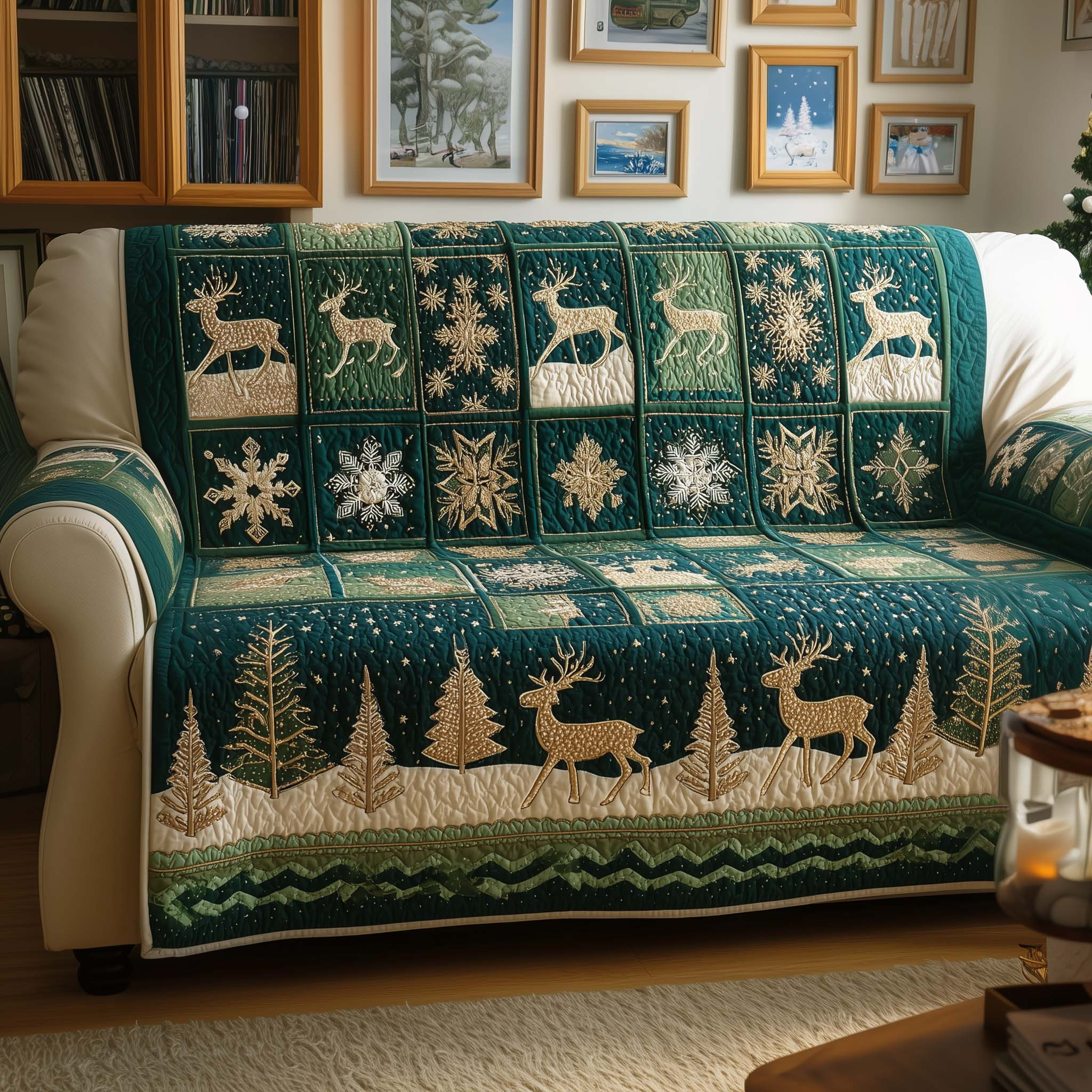 $45.99 – $74.99Price range: $45.99 through $74.99Yuletide Patchwork Quilted Sofa Cover Patchwork Christmas Design Deer Themed Gifts For Him