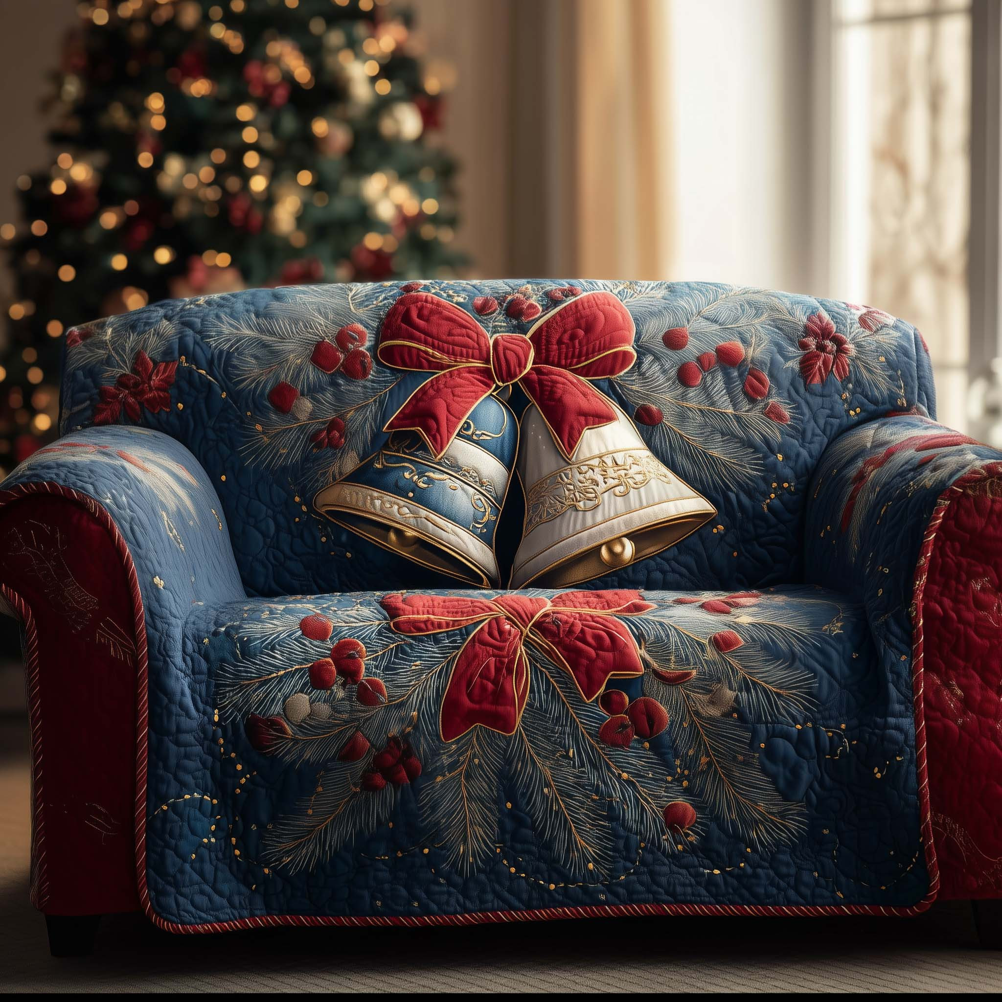 Christmas Bell Quilted Sofa Cover Classic Yuletide Bell Design Best Gifts For Christmas