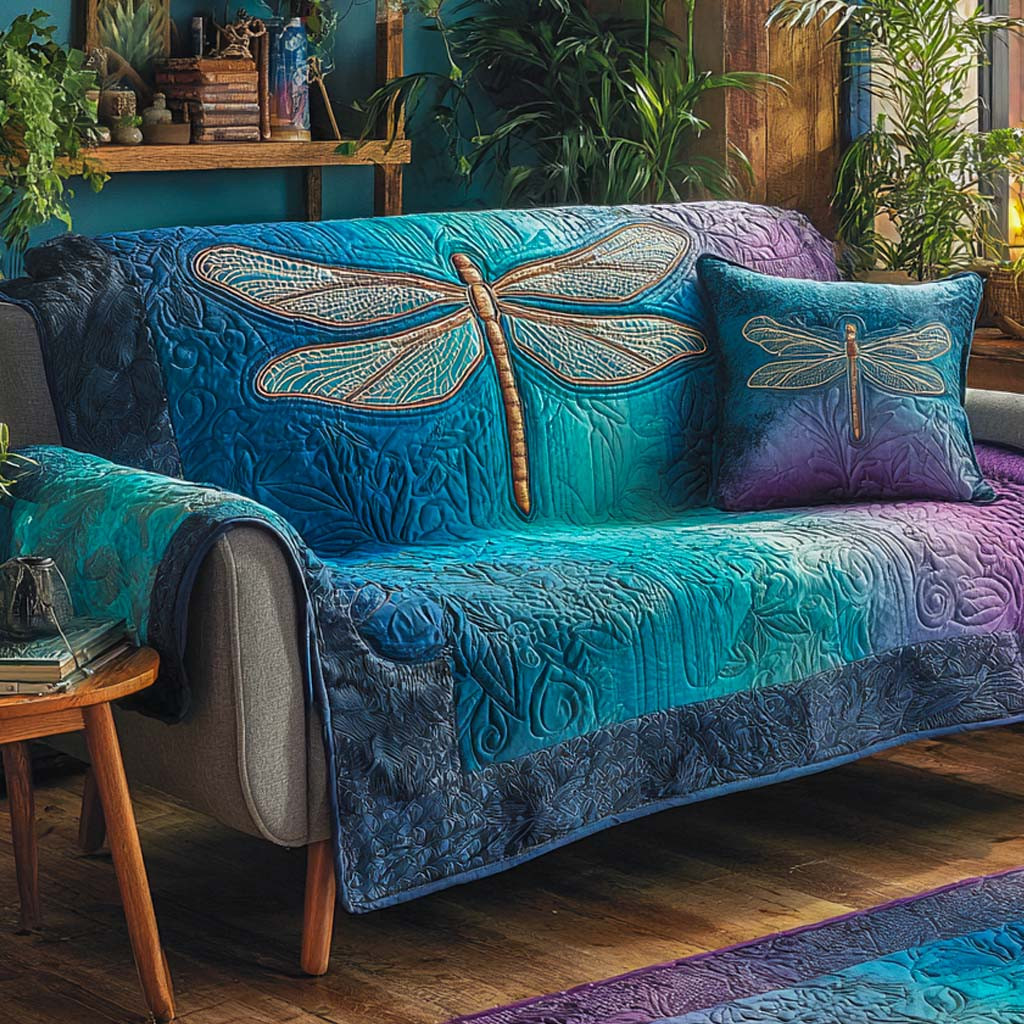 Dragonfly Radiant Aurora Quilted Sofa Cover Aesthetic Home Decor Dragonfly Gift Ideas