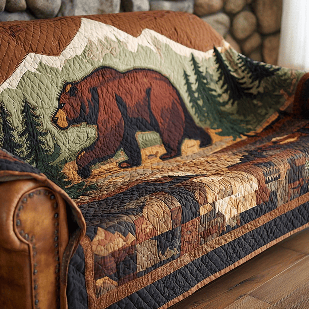 Bear Quilted Sofa Cover Mountain Wanderer Couch Decor Present For People Who Love Bear