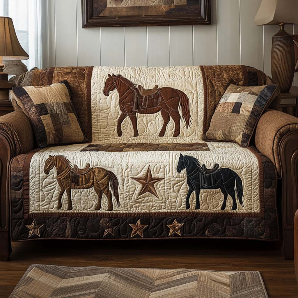 Horse Quilted Sofa Cover Rustic Charm Couch Decor Unique Gift For Horse Lovers