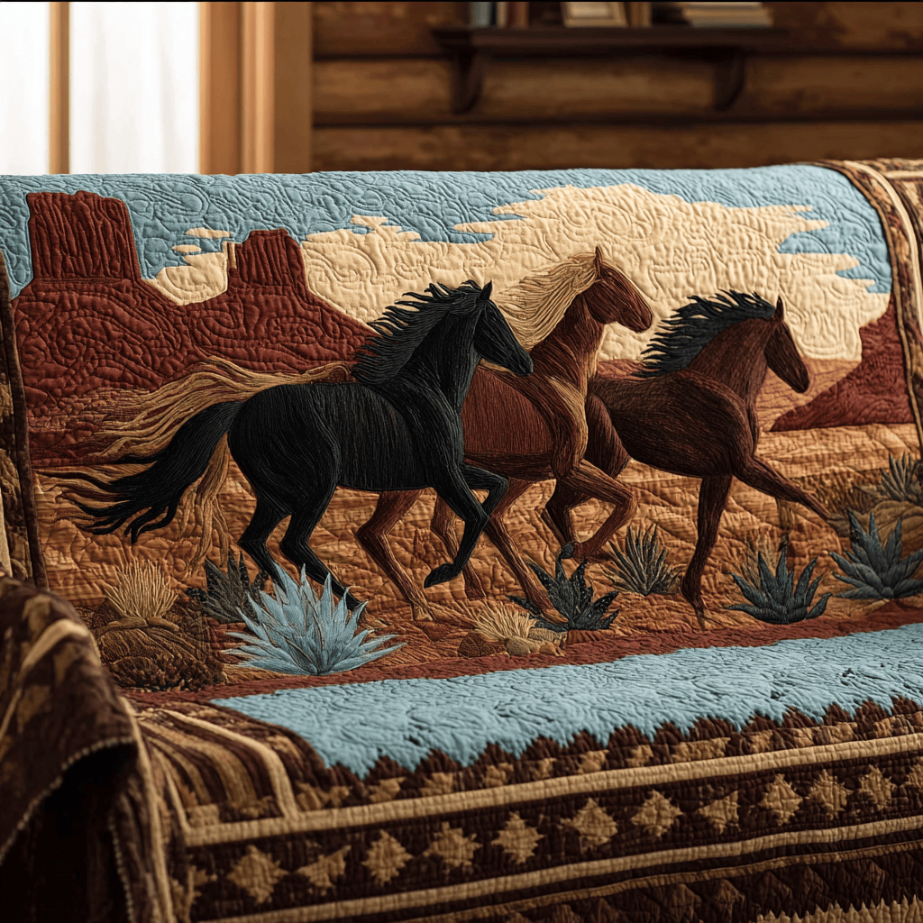 Horse Quilted Sofa Cover Spirit Run Couch Cover Best Gift For Horse Owners