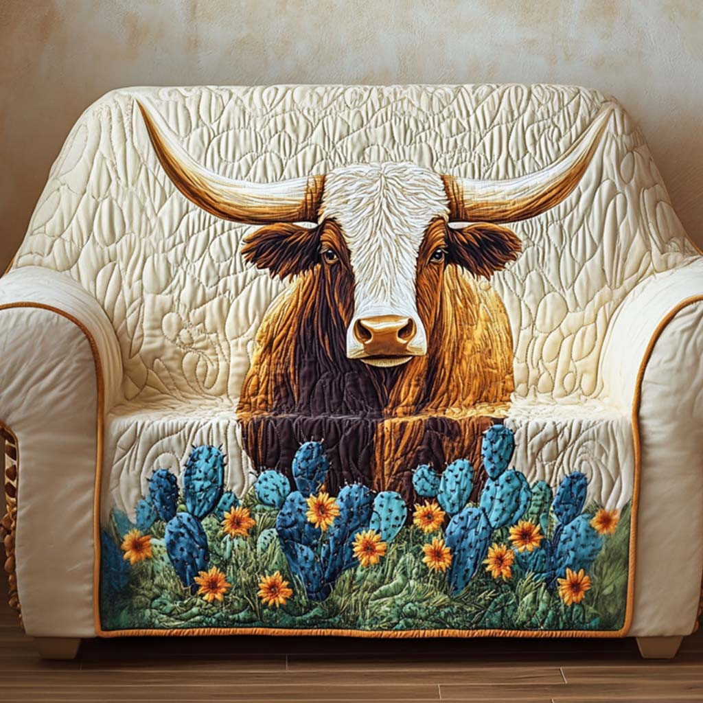 Longhorn Cow Quilted Sofa Cover Texas Pride Top Couch Decor Present For Longhorn Cow Lovers