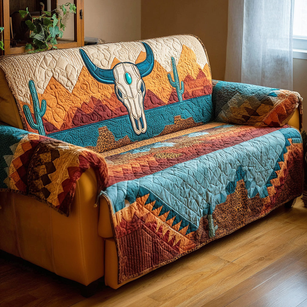 Longhorn Skull Quilted Sofa Cover Top Prairie Bones Couch Decoration Gift For Man