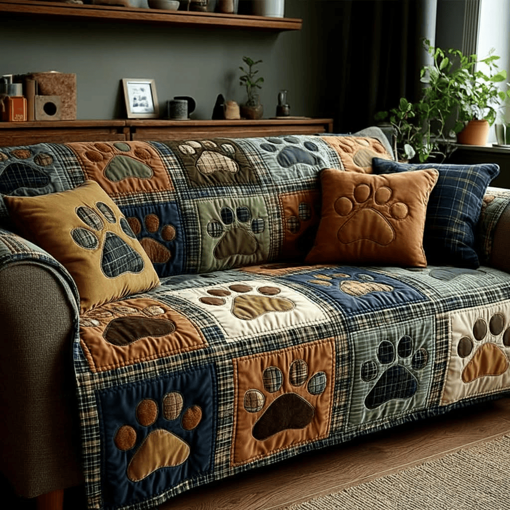 Love Paw Quilted Sofa Cover Handmade Couch Covers Pet Owner Gift Ideas