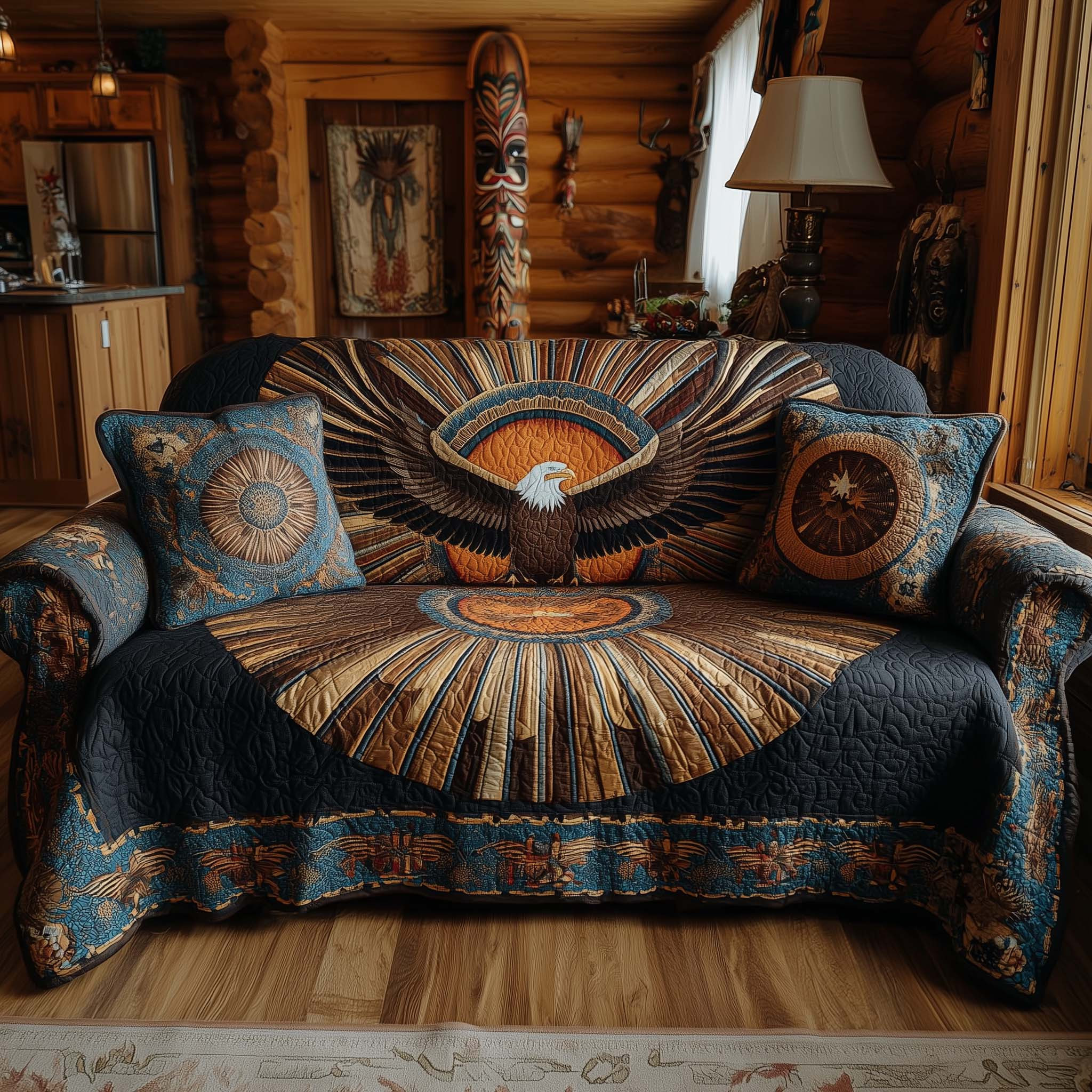 $45.99 – $74.99Price range: $45.99 through $74.99Native Eagle Quilted Sofa Cover Tribal Feathered Wildlife Motif Eagle Themed Gifts Winter