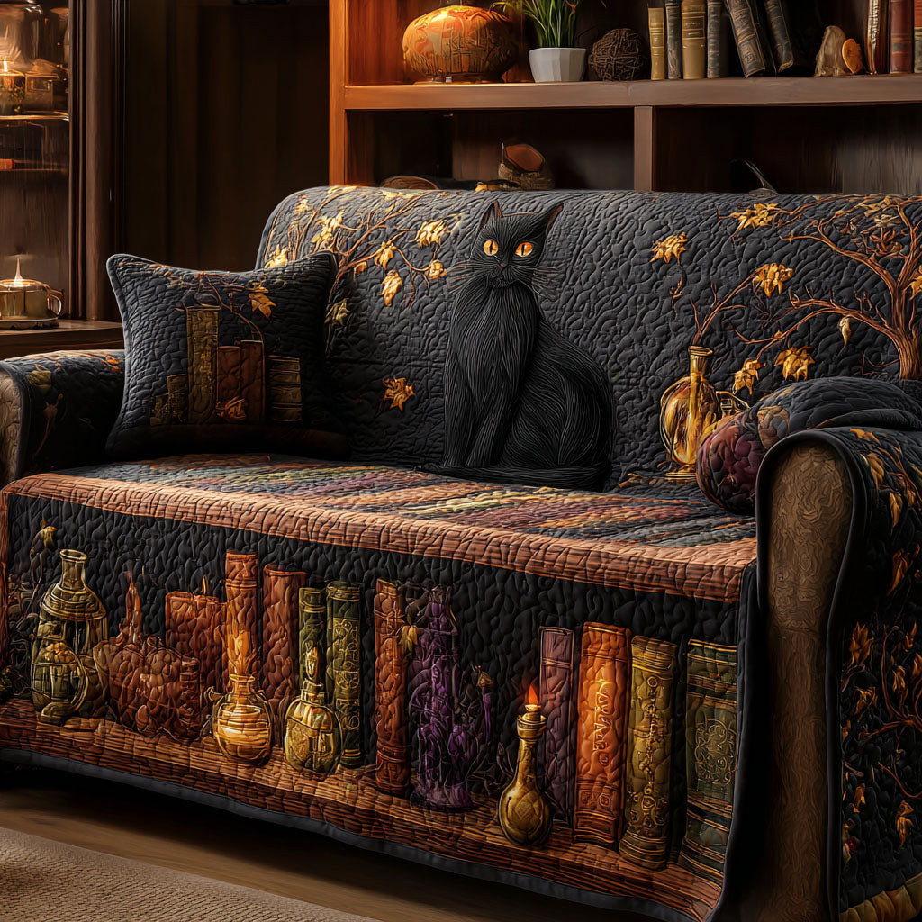$45.99 – $74.99Price range: $45.99 through $74.99Black Cat Quilted Sofa Cover Mysterious Spellbound Cat Couch Decoration Gift For Book Lovers