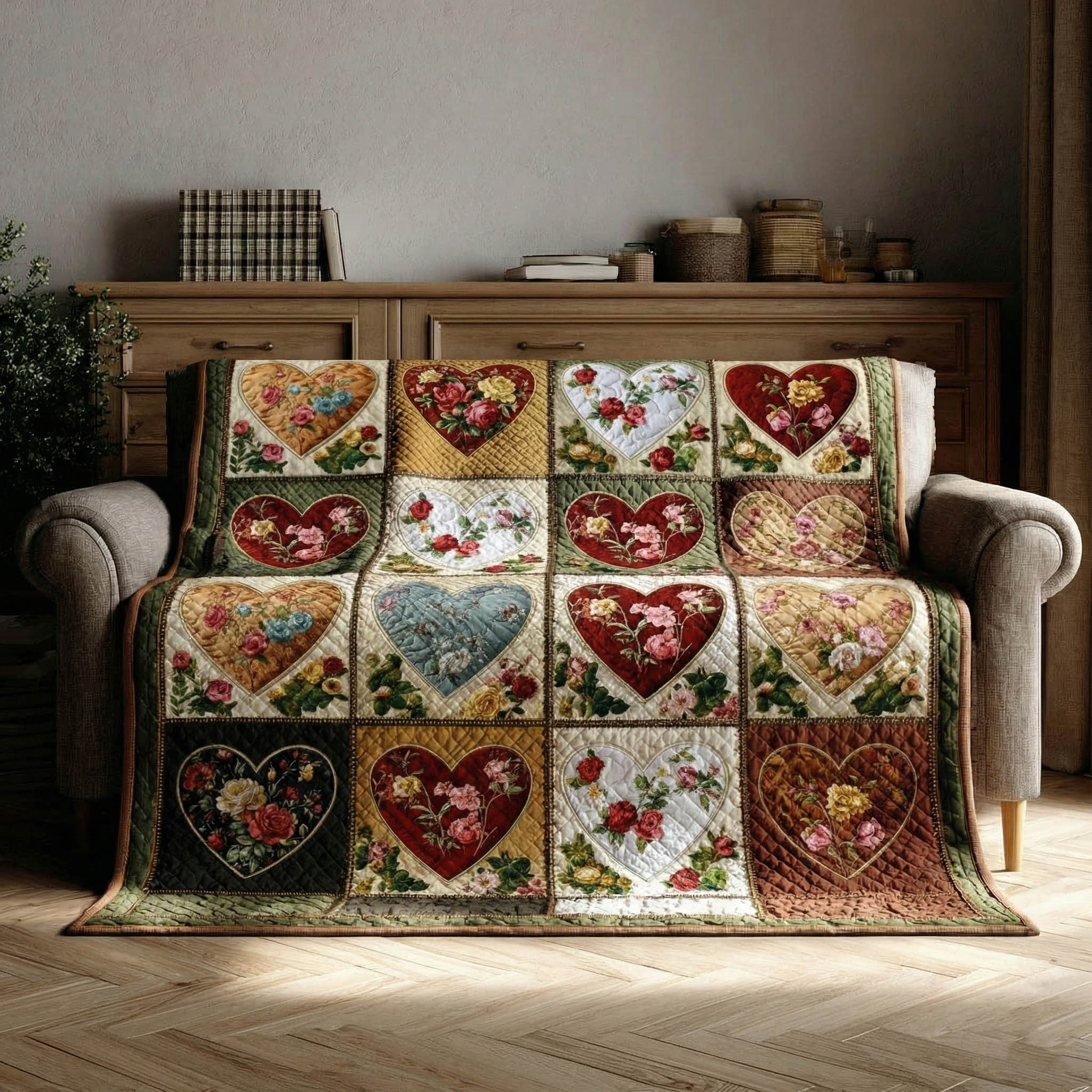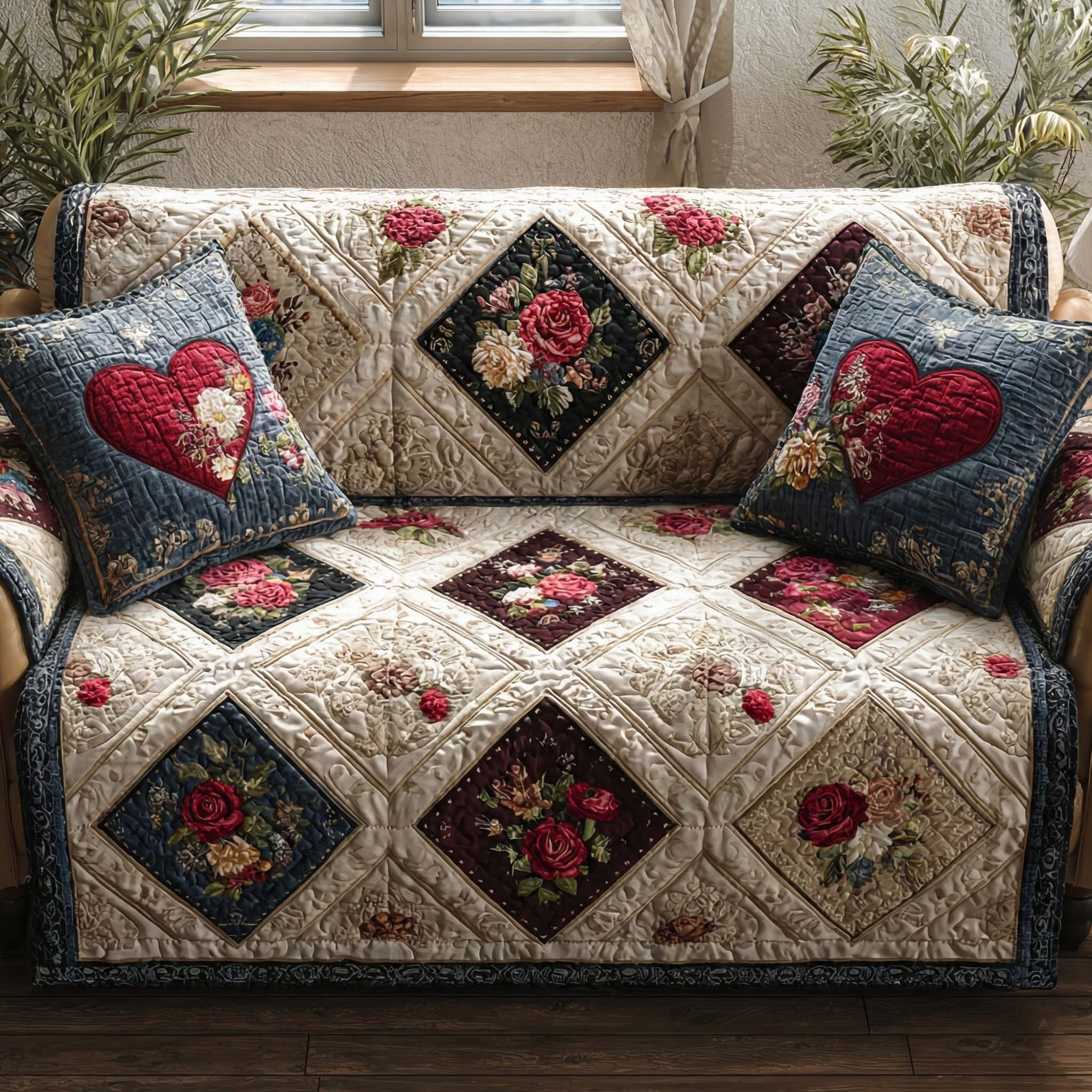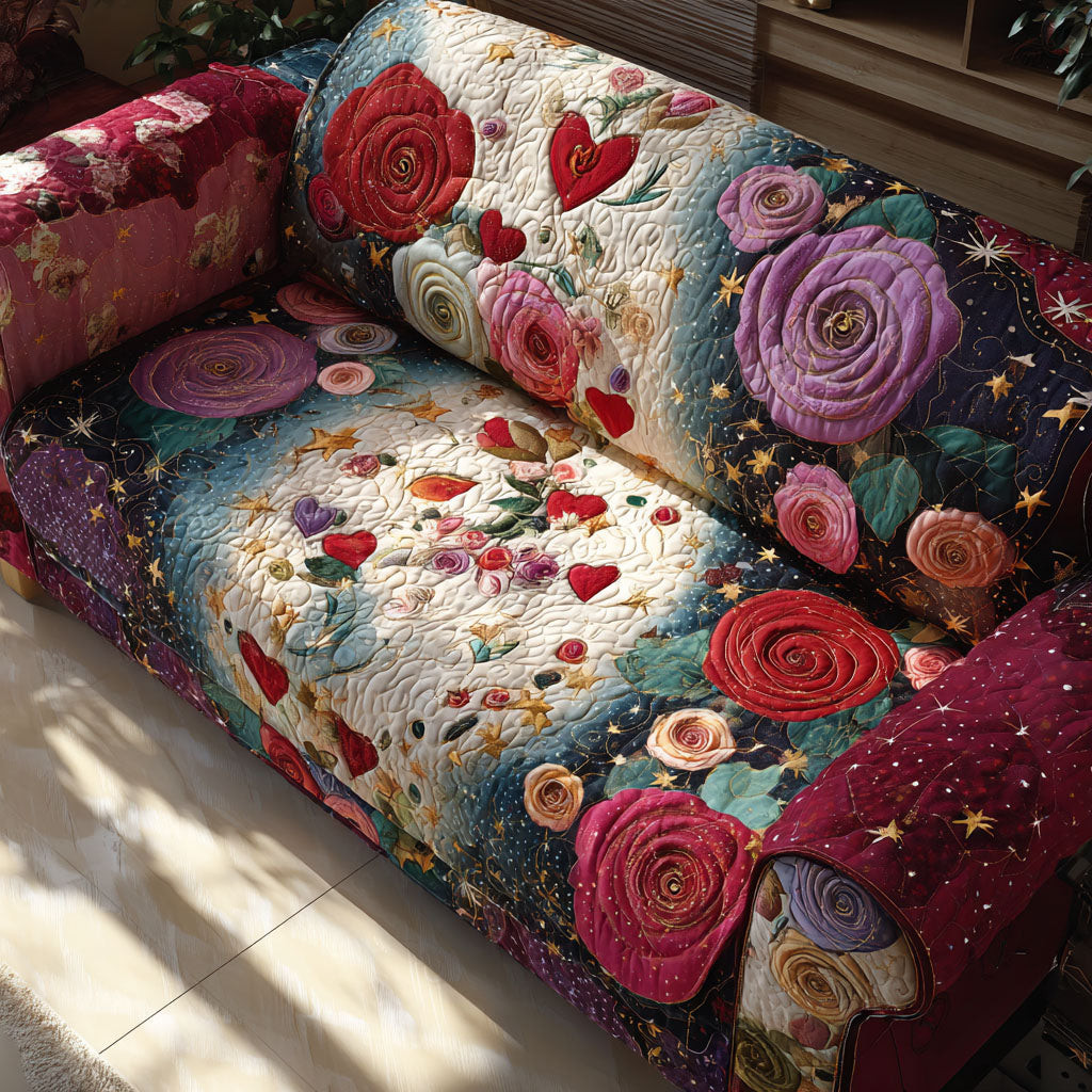 Rose Harmony Quilted Sofa Cover Valentine Day Gift Ideas For Coworkers