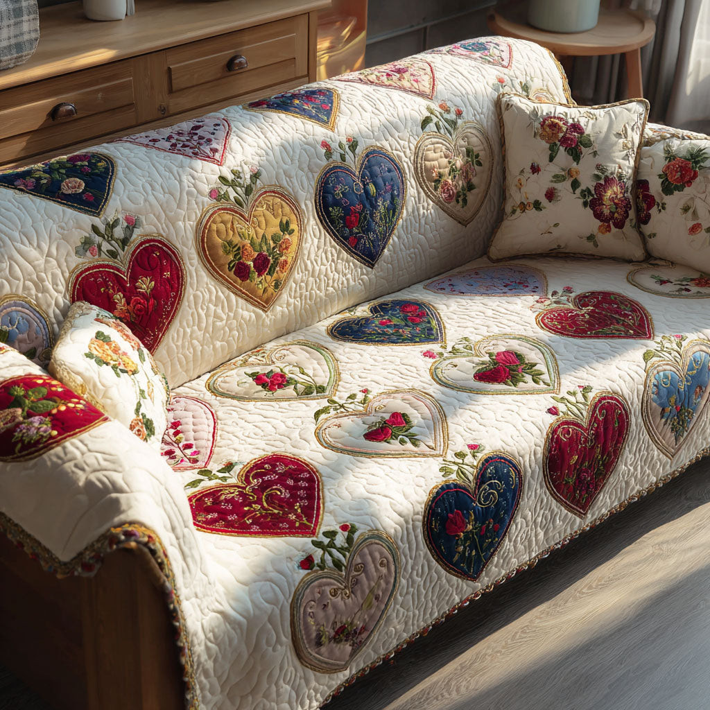 $45.99 – $74.99Price range: $45.99 through $74.99Harmony Hearts Quilted Sofa Cover Valentine Day Gifts For The Whole Family