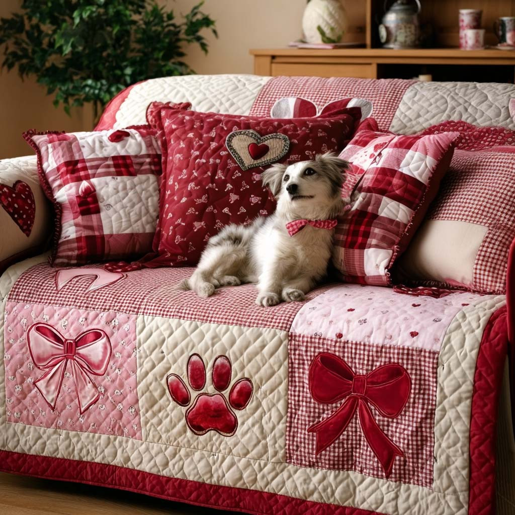 $45.99 – $74.99Price range: $45.99 through $74.99Loving Pawprints Quilted Sofa Cover Valentine Day Giving Ideas For Dog Owners