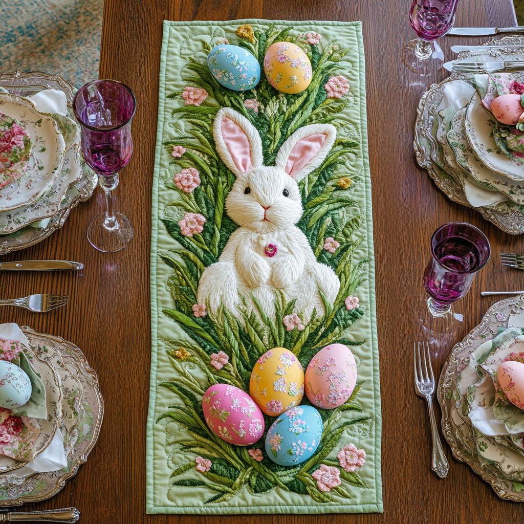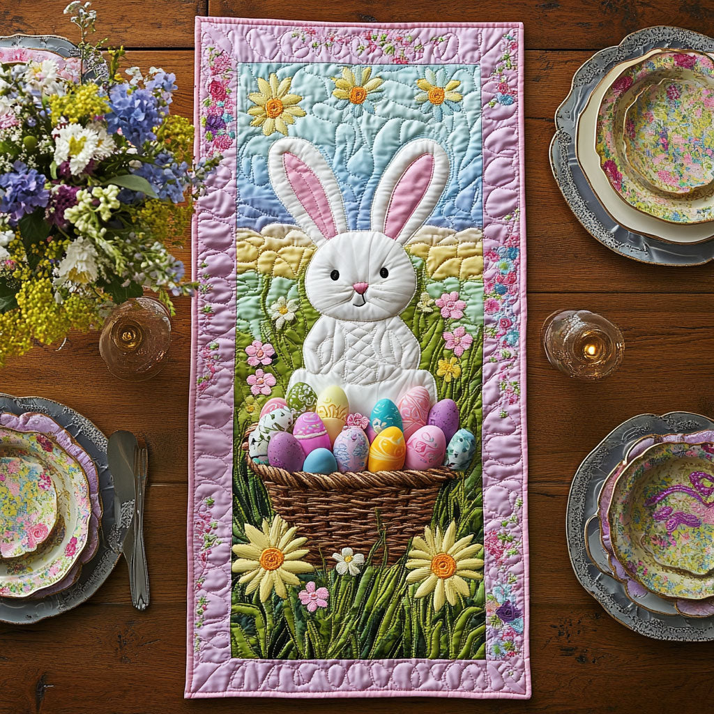 Adorable Bunny Quilted Table Runner Natural Table Runner Mothers Day Gift For My Daughter