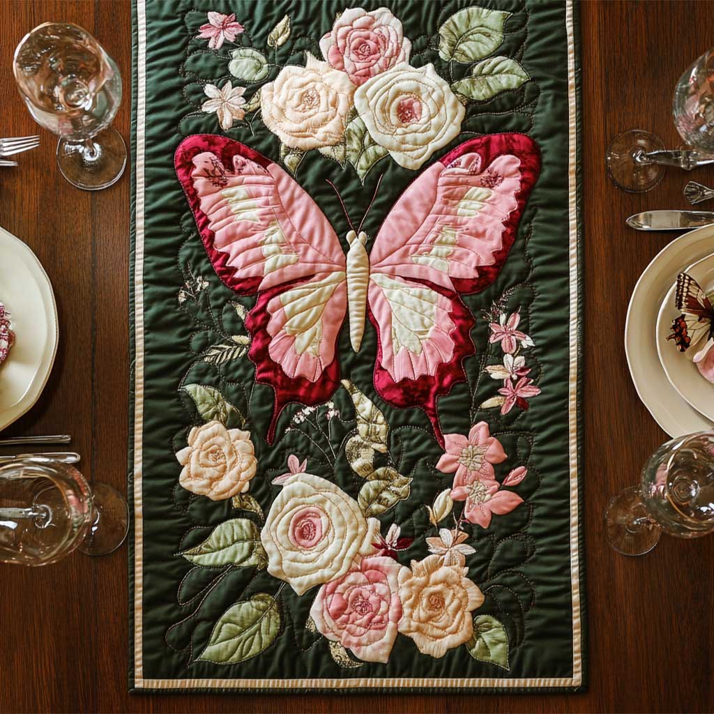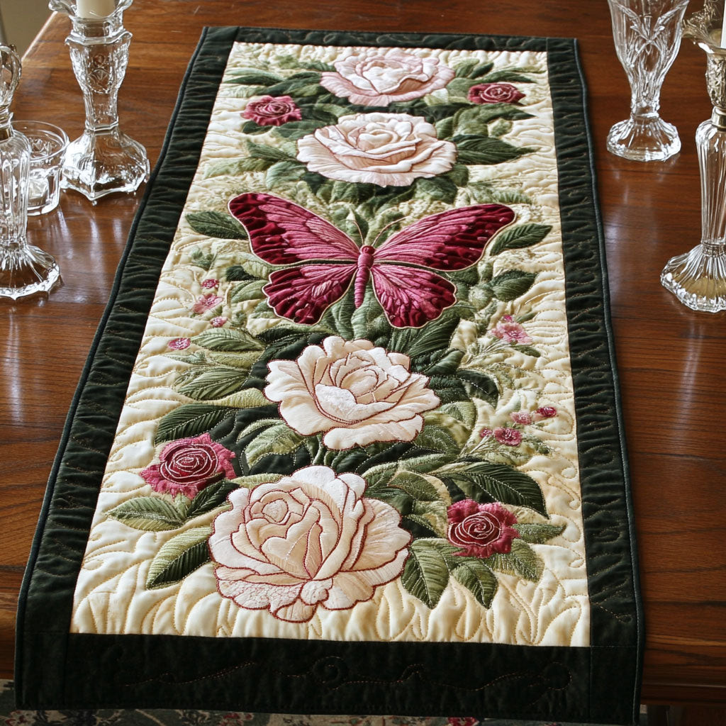Butterfly In Rose Quilted Table Runner Autumn Table Runner Cute Mothers Day Gifts
