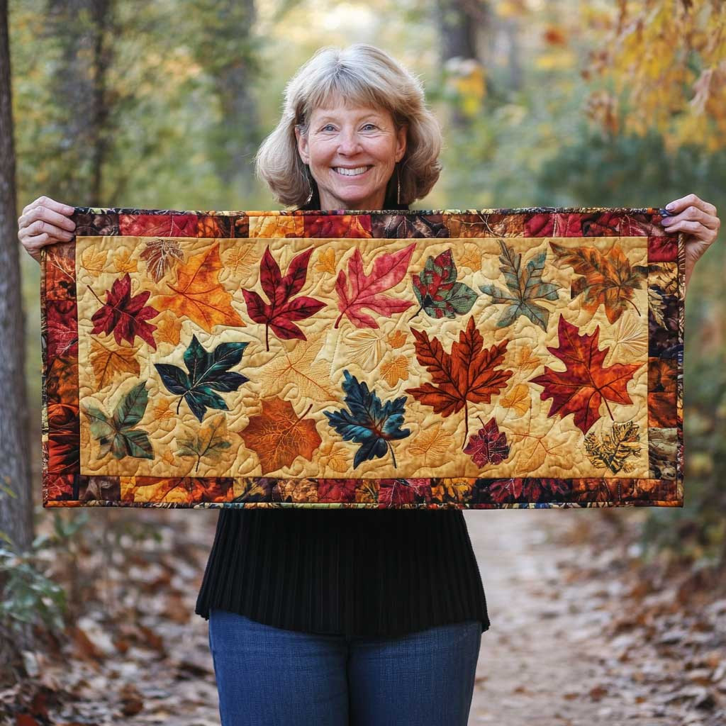 Autumn Leaf Gnome Quilted Table Runner Autumn Table Runner Mother’s Day Gift Ideas For Wife