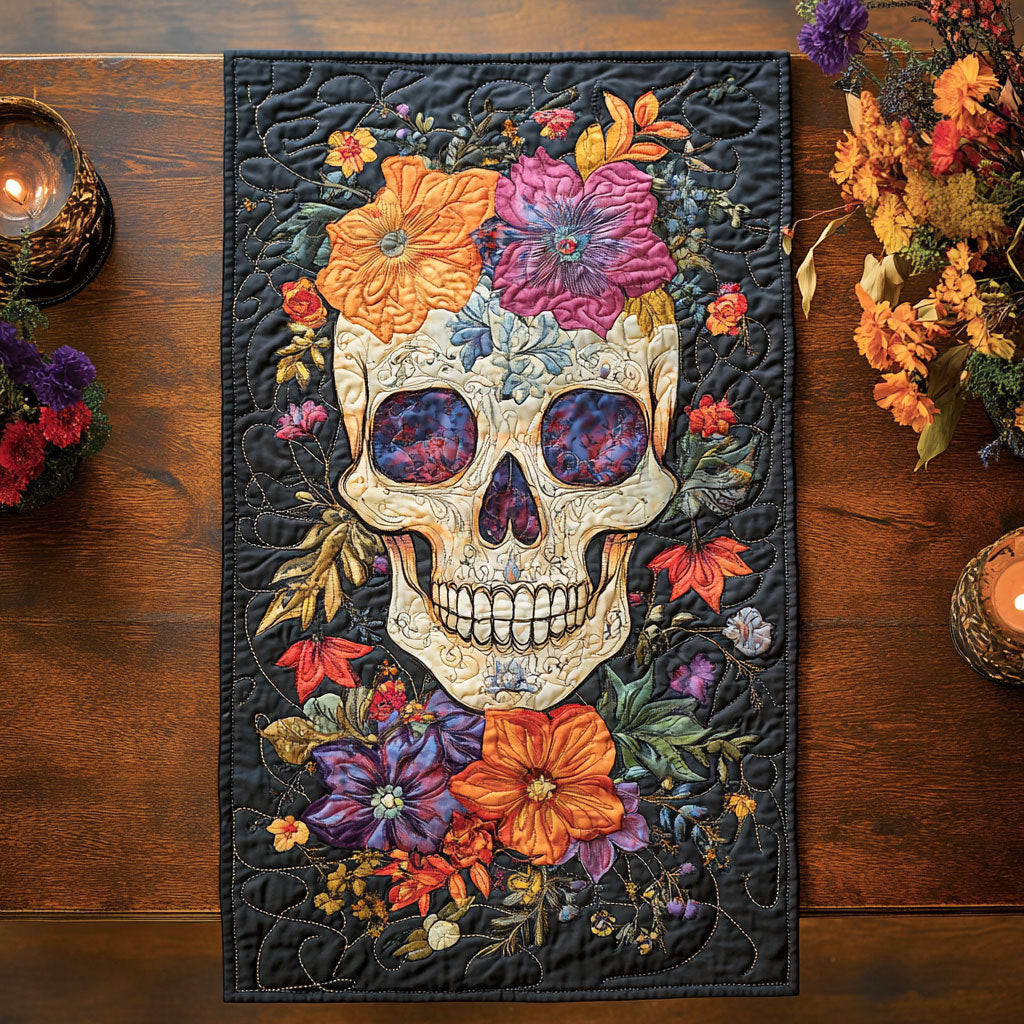 Floral Skull Quilted Table Runner Holiday Table Runner Father’s Day Special Gifts For Dad