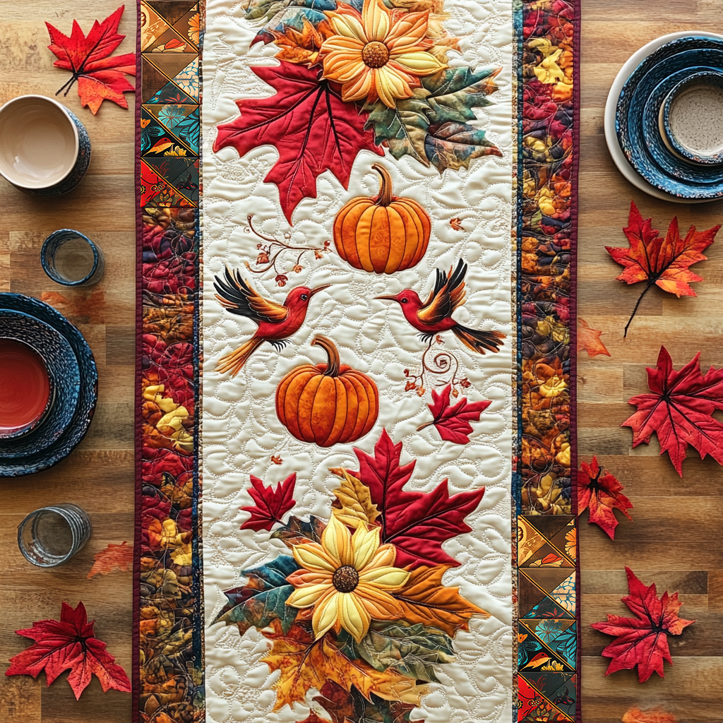 Hummingbird’s Fall Foliage Quilted Table Runner Holiday Table Runner Mother’s Day Gifts For Elderly