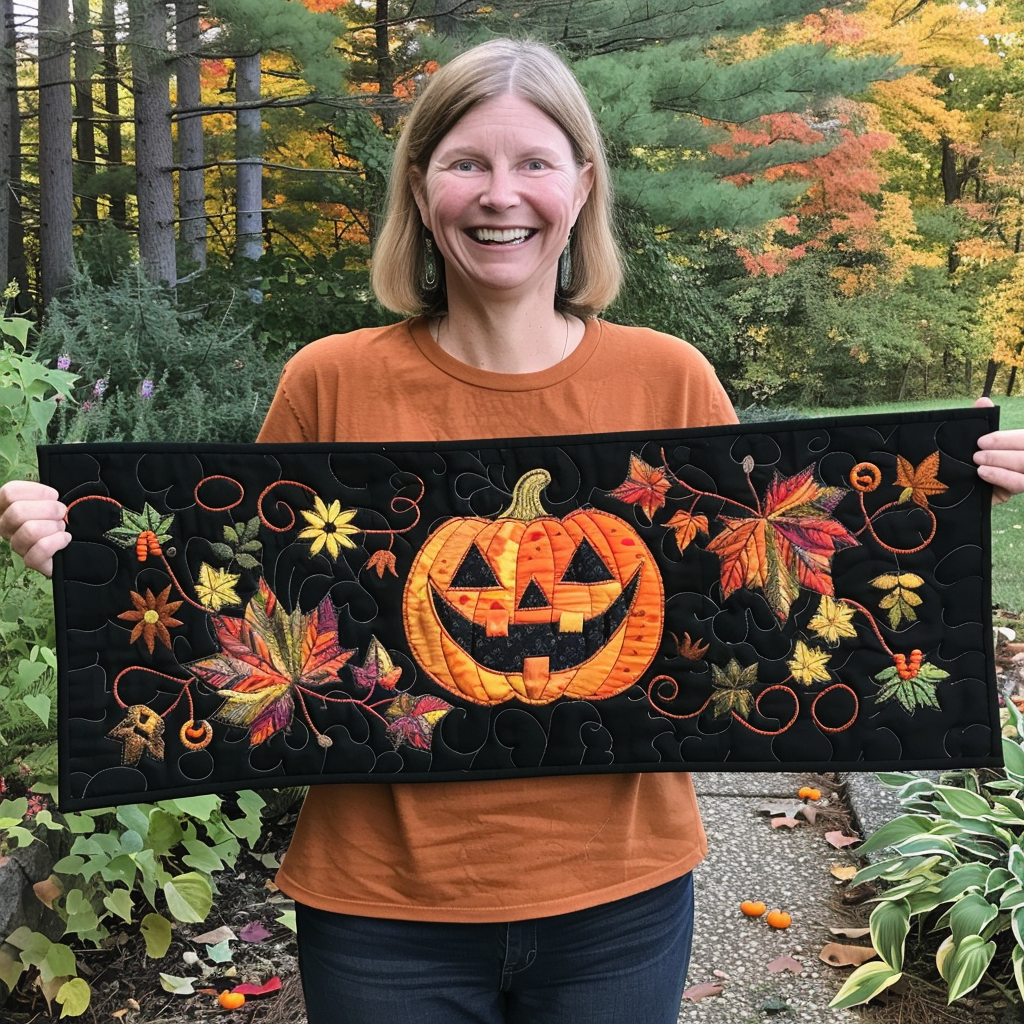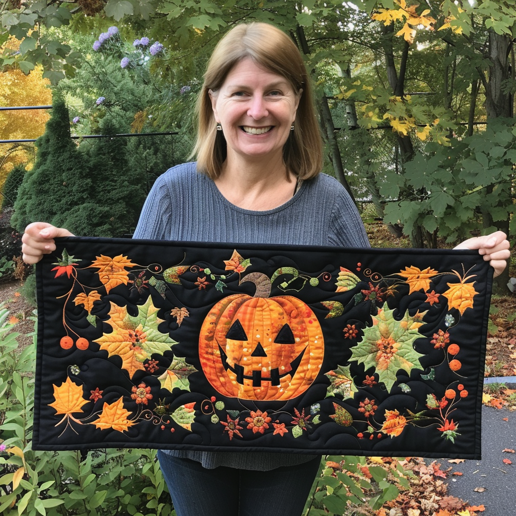Pumpkin Halloween Quilted Table Runner Autumn Table Runner Cute Mothers Day Gifts